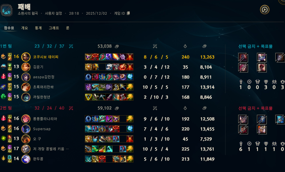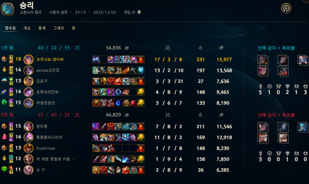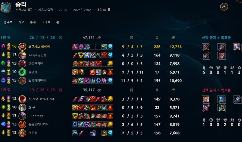 | 챔피언 | 게임 수 | 승률 | K | D | A | CS |