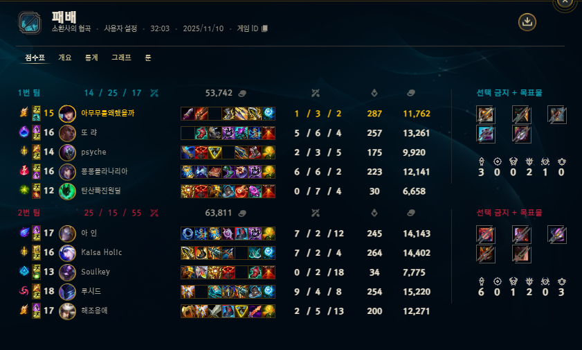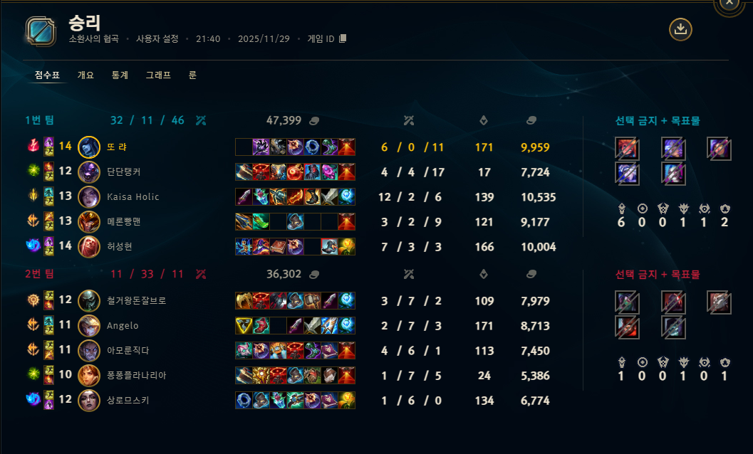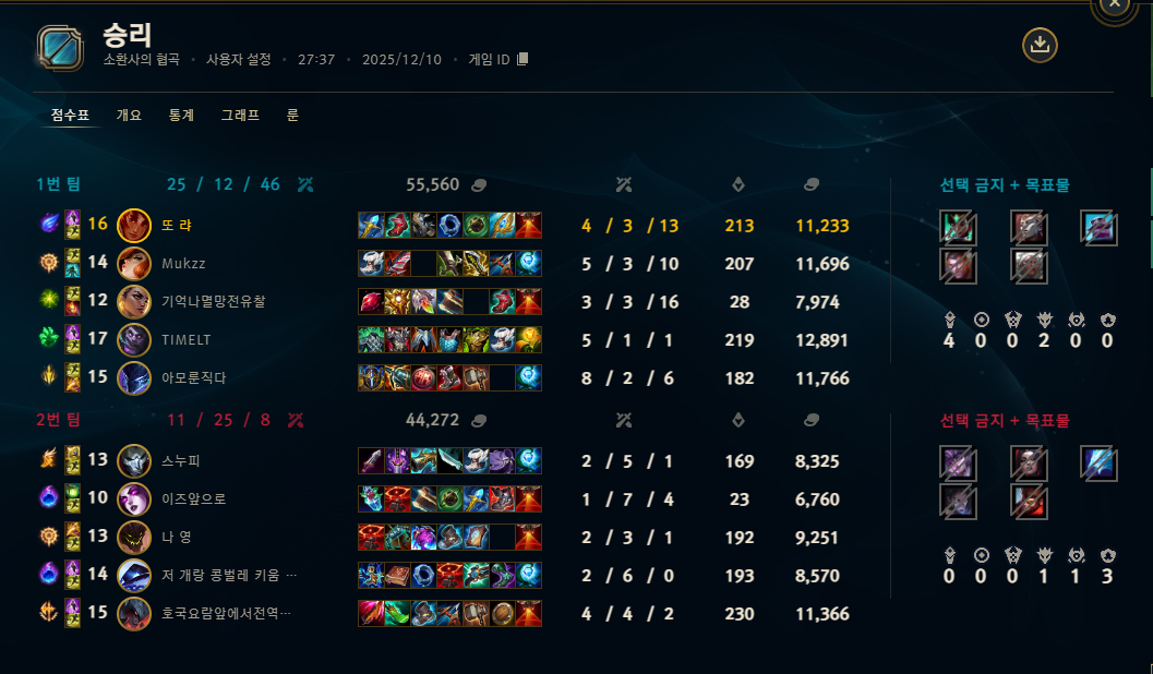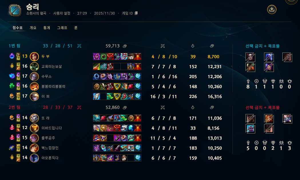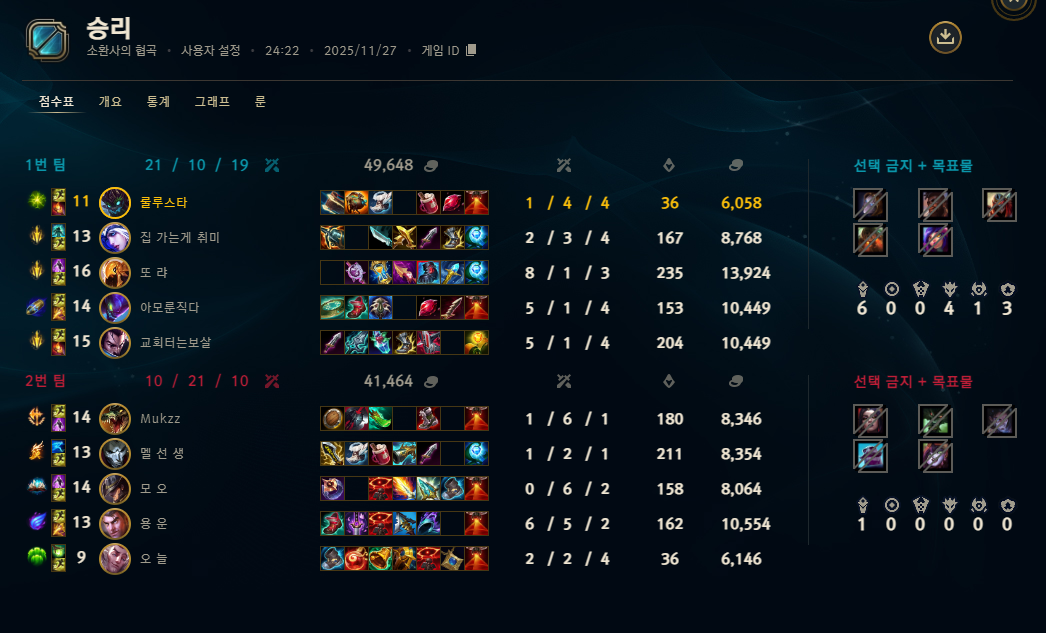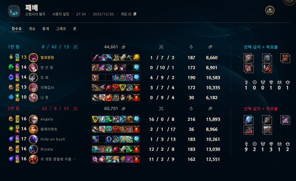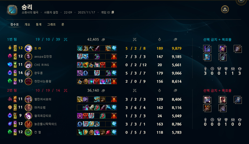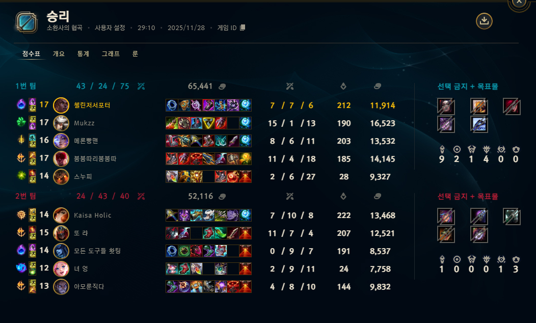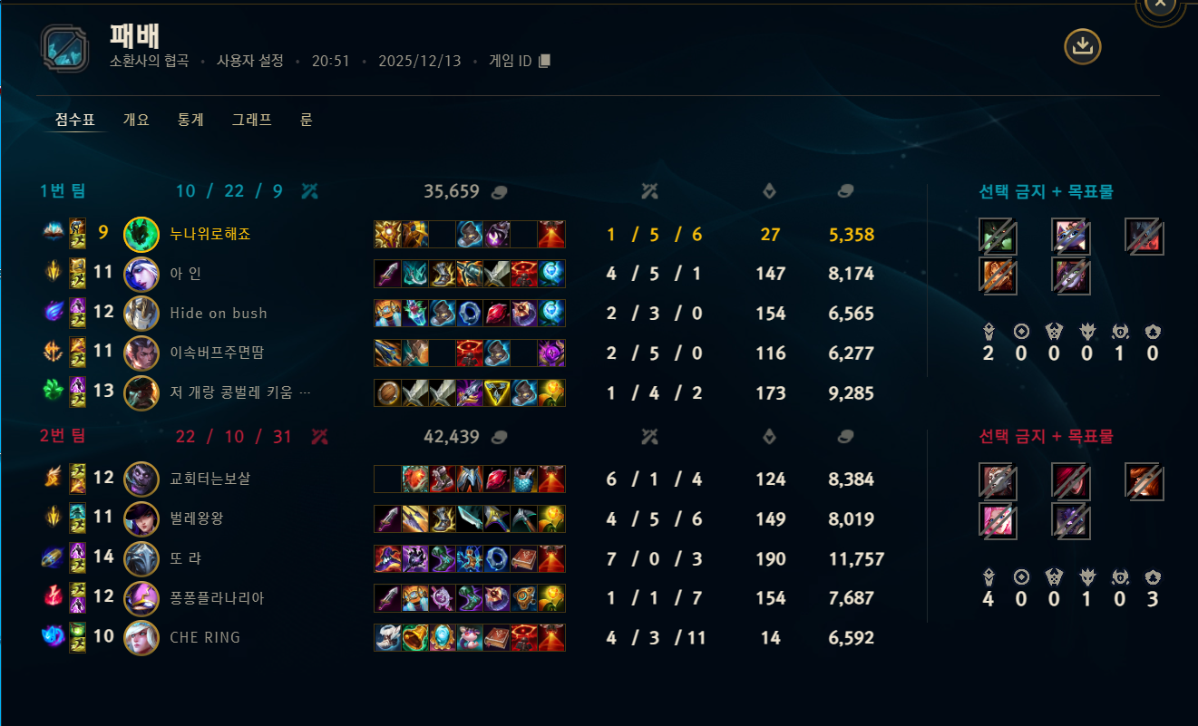 | 챔피언 | 게임 수 | 승률 | K | D | A | CS |