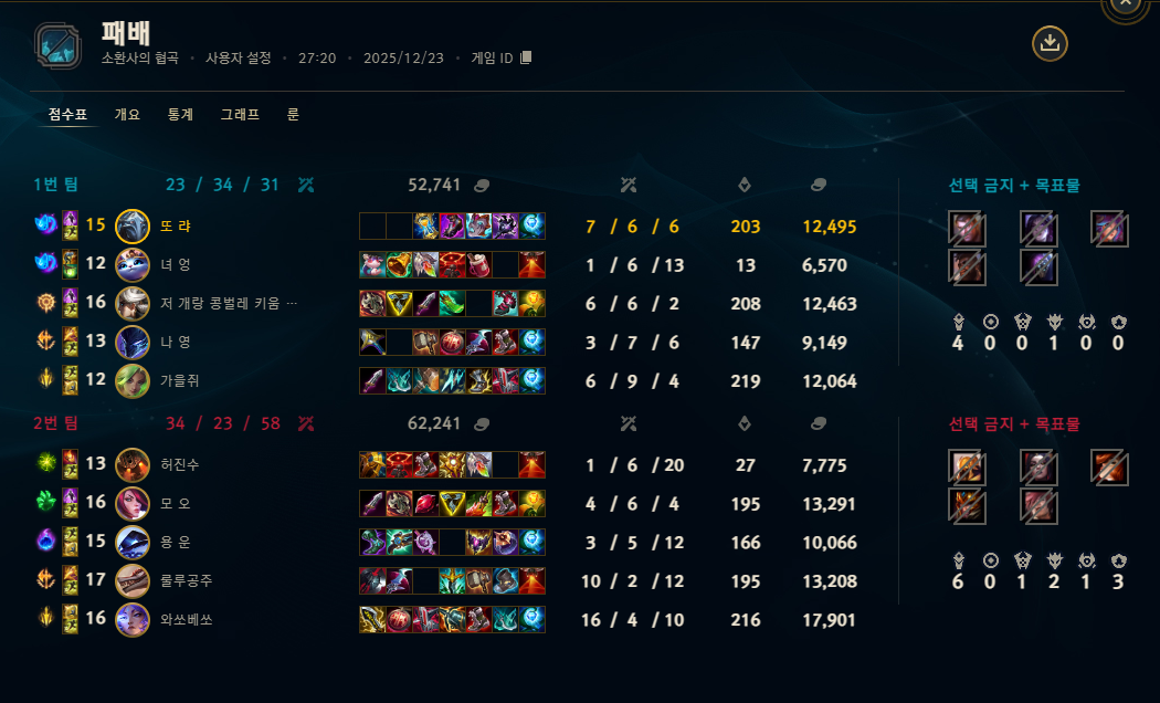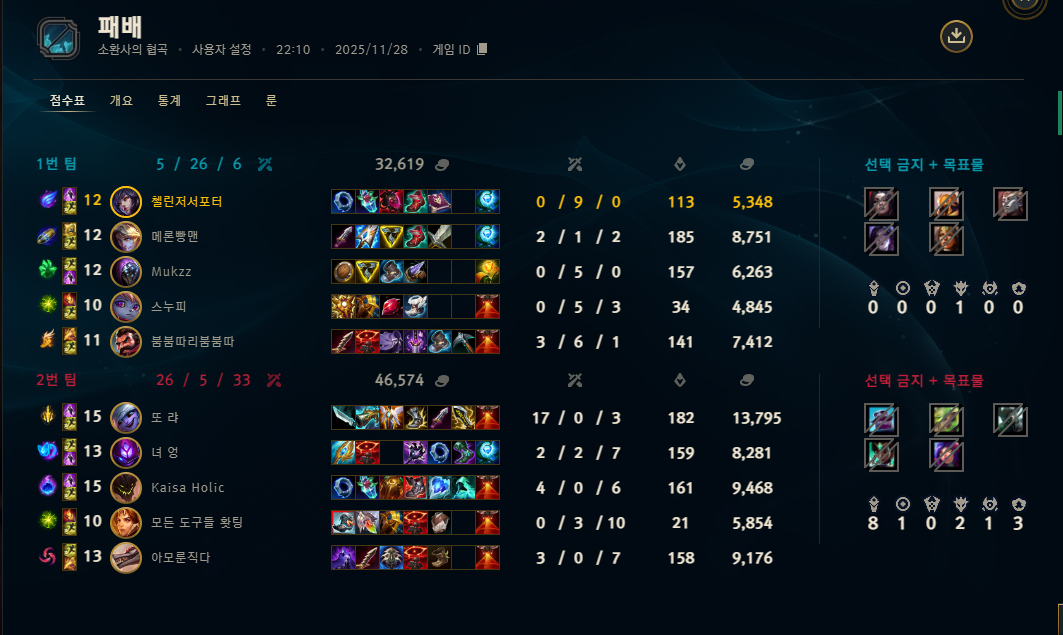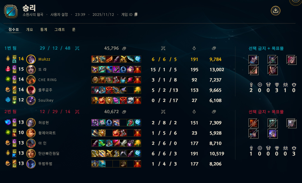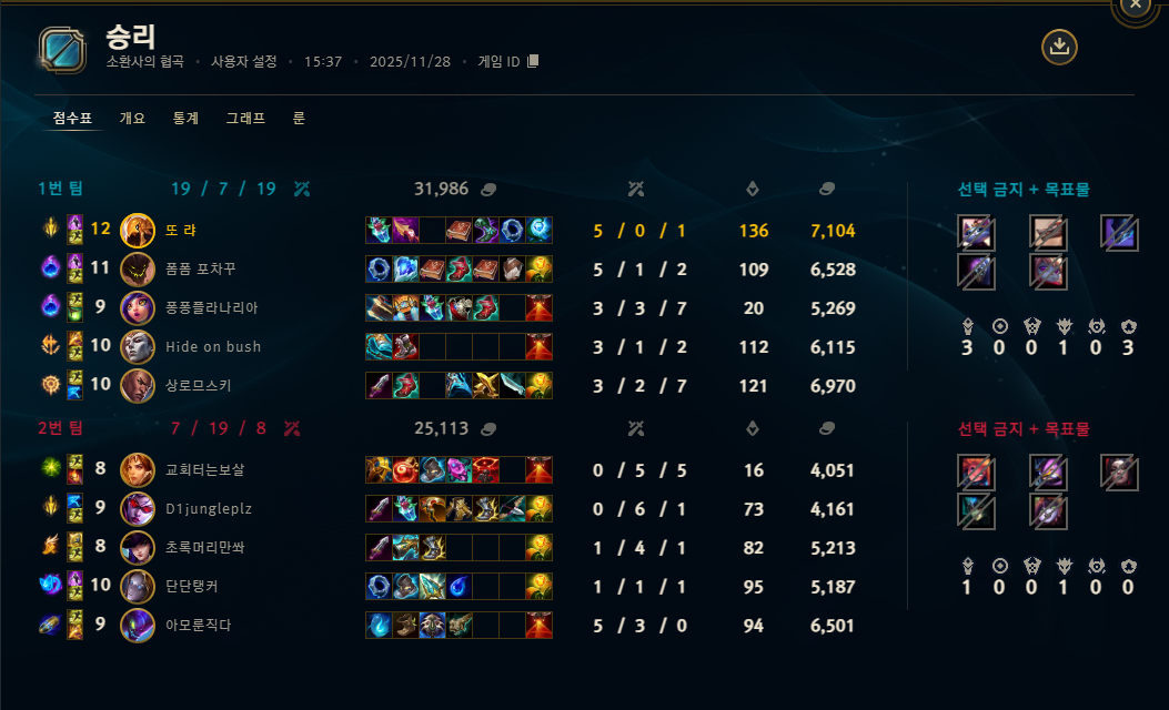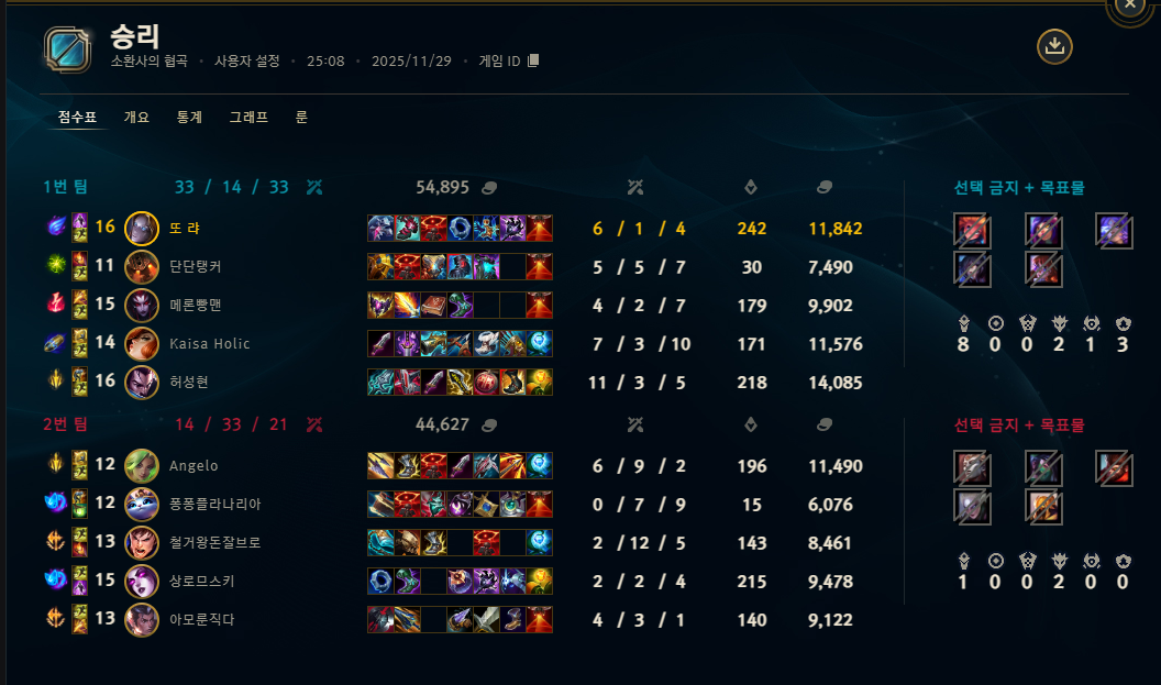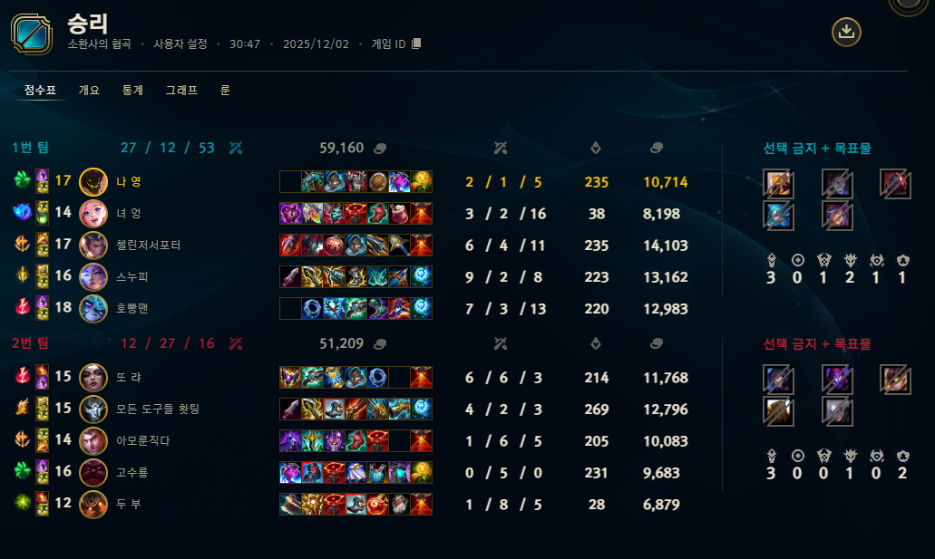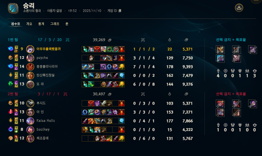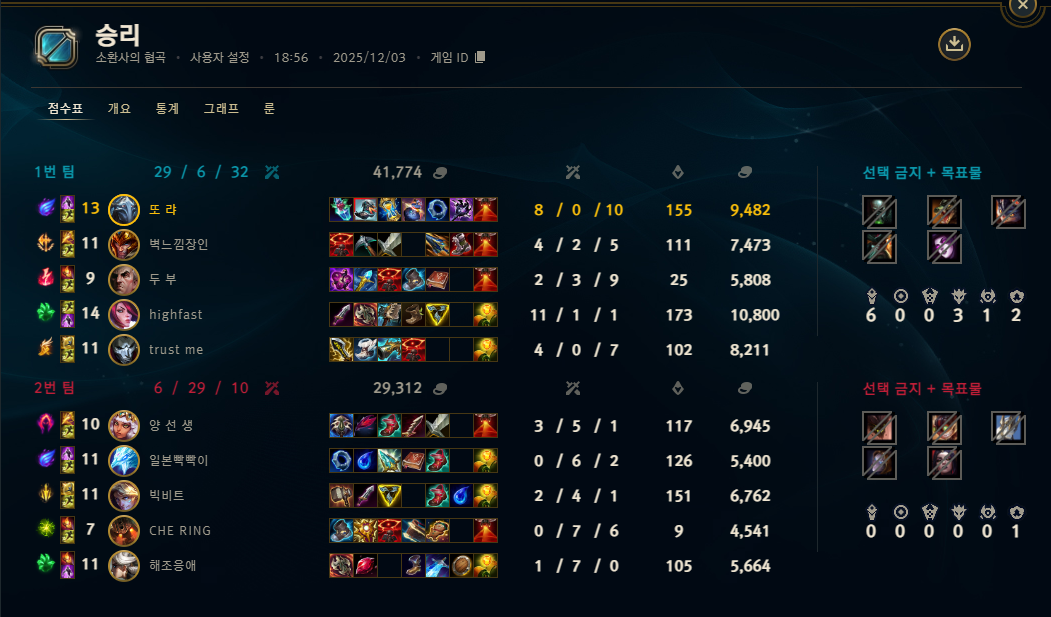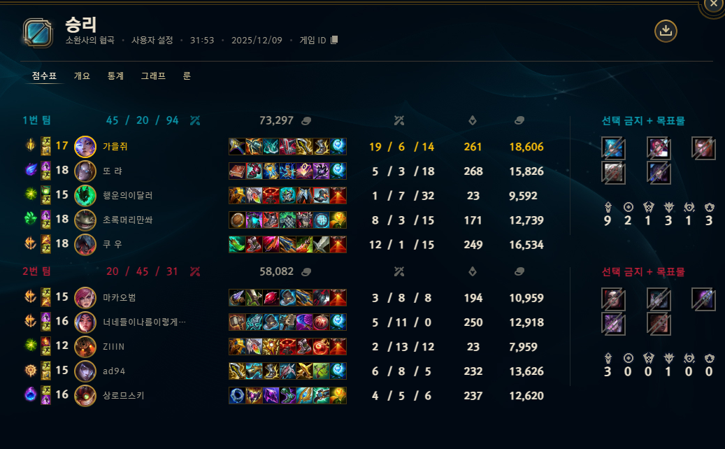 | 챔피언 | 게임 수 | 승률 | K | D | A | CS |