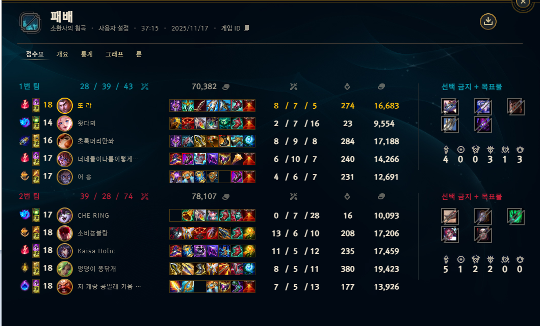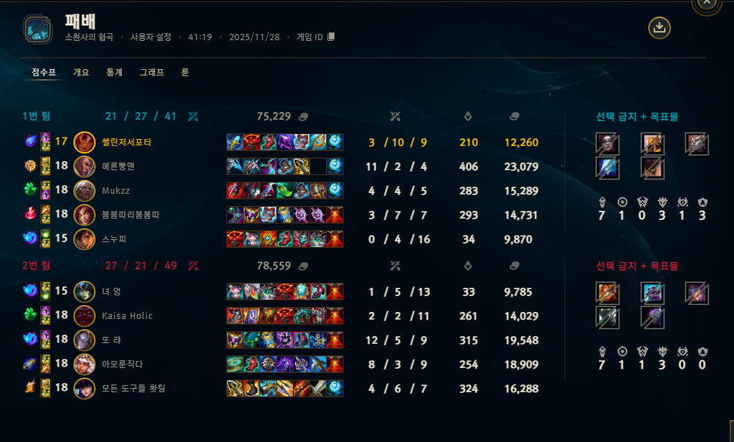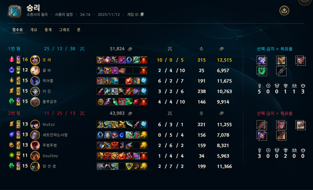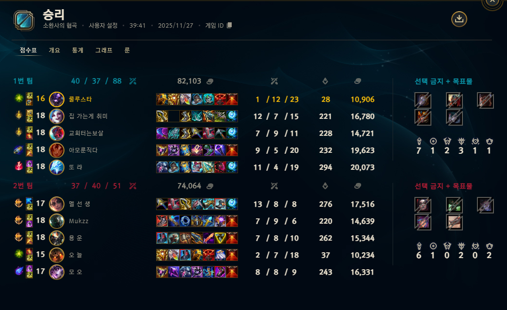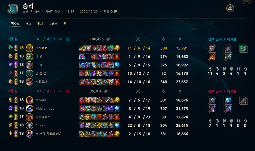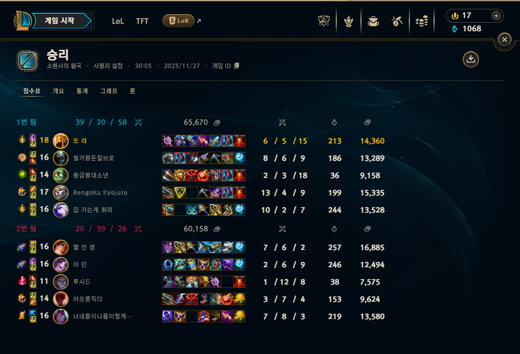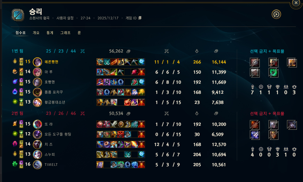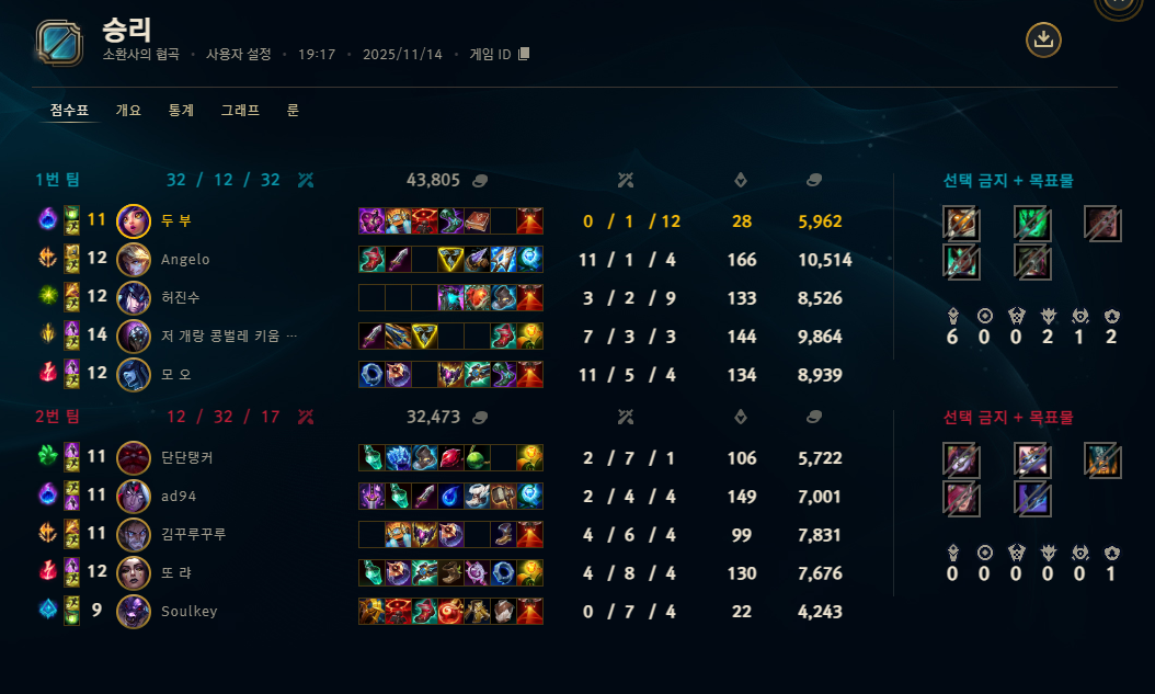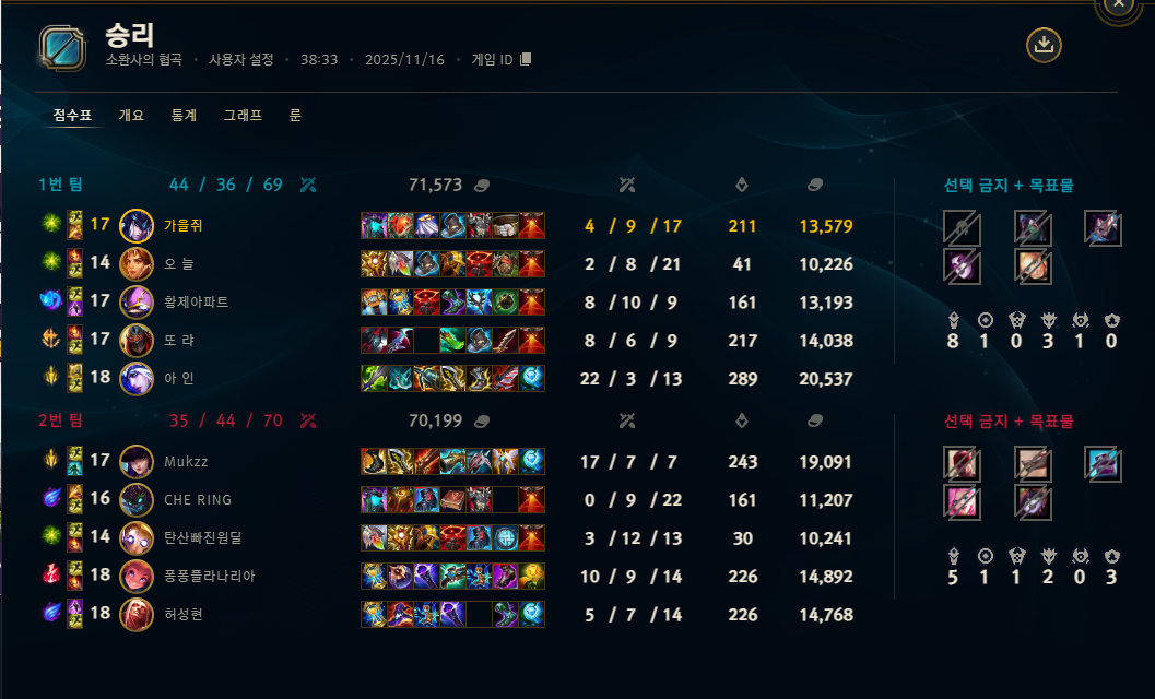 | 챔피언 | 게임 수 | 승률 | K | D | A | CS |