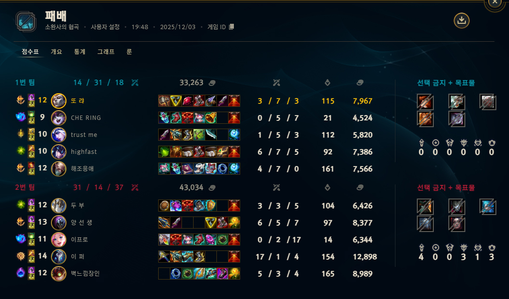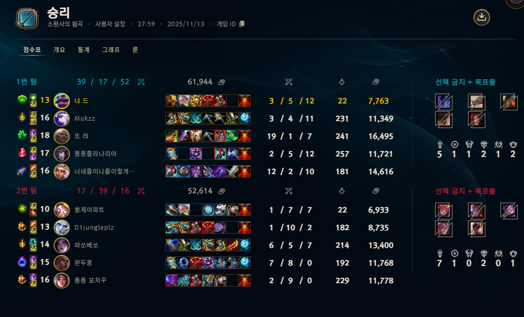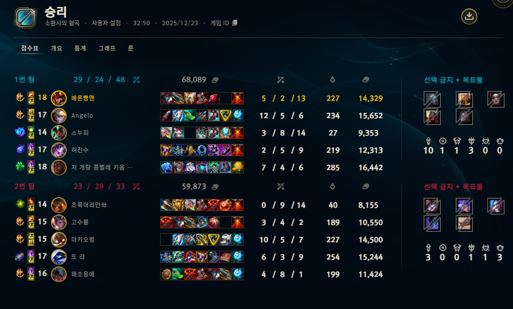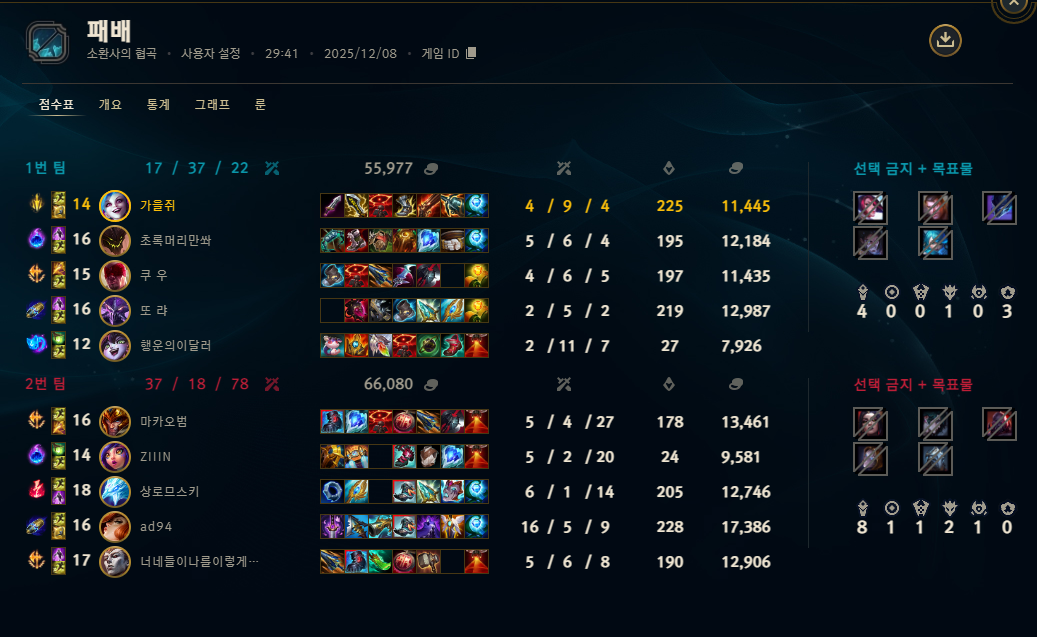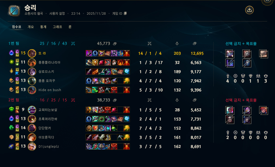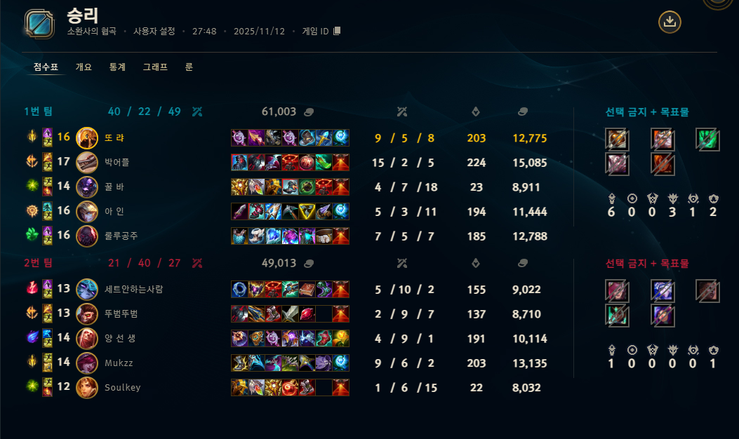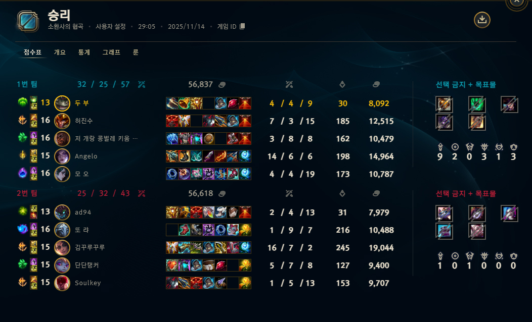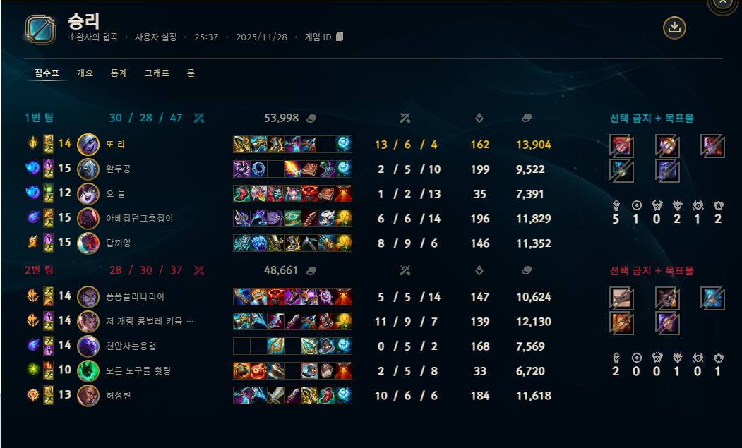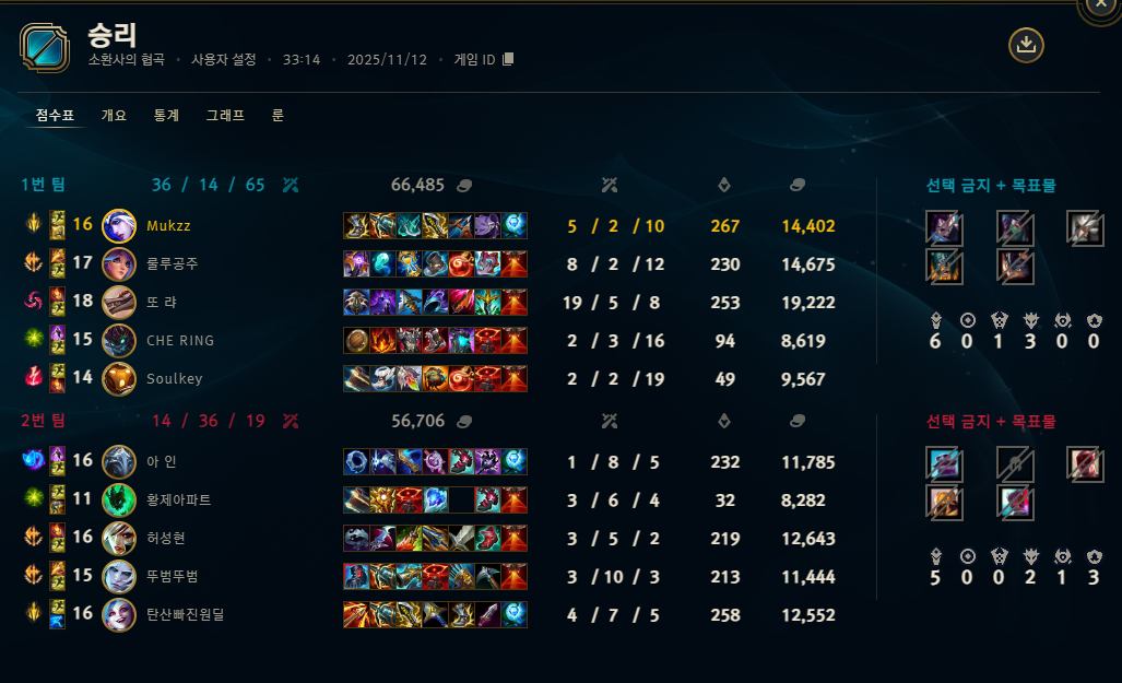 | 챔피언 | 게임 수 | 승률 | K | D | A | CS |