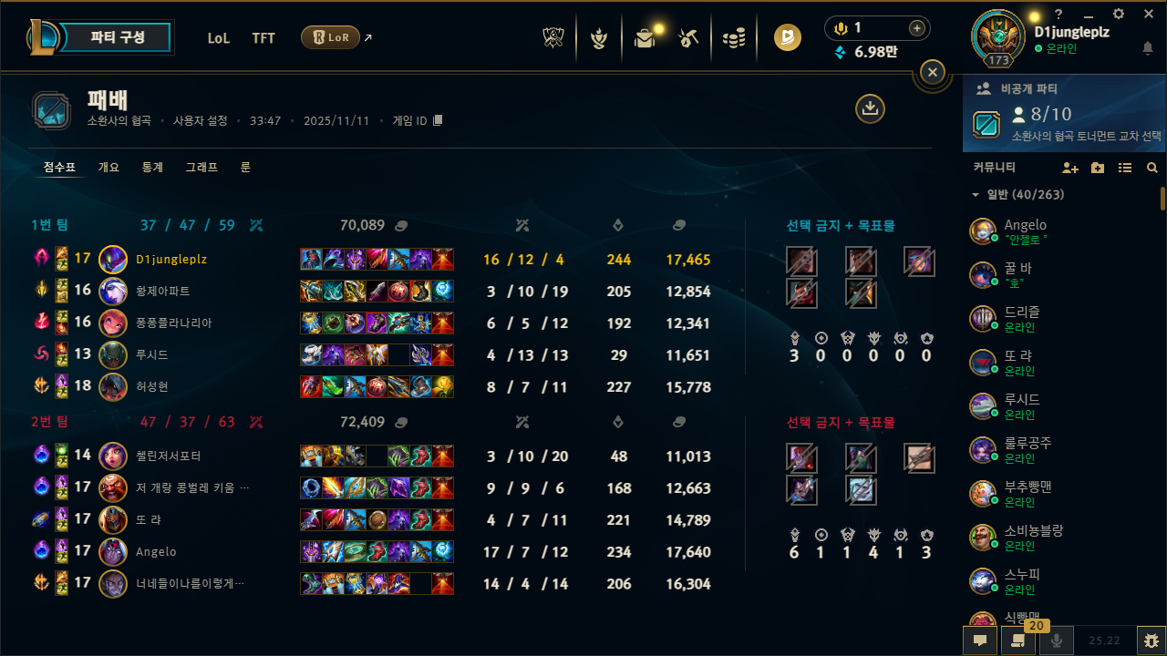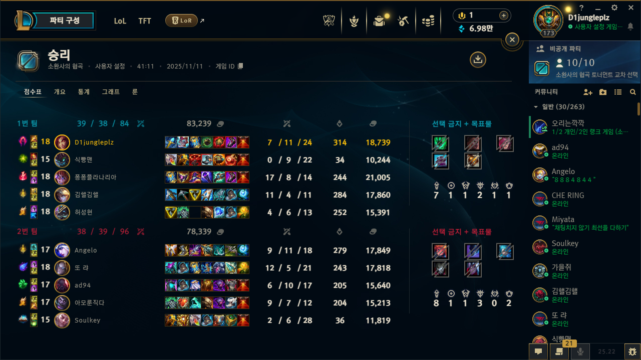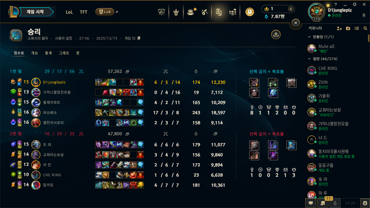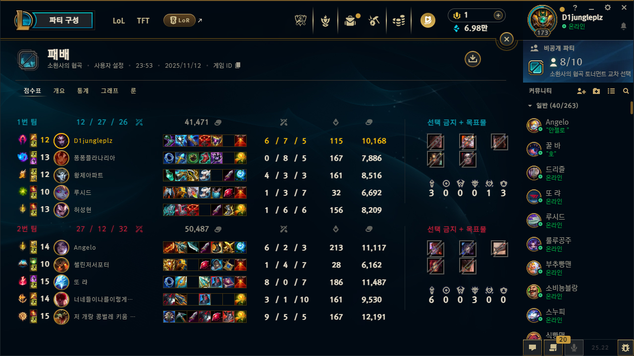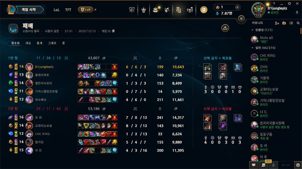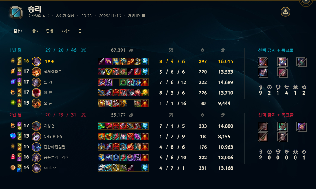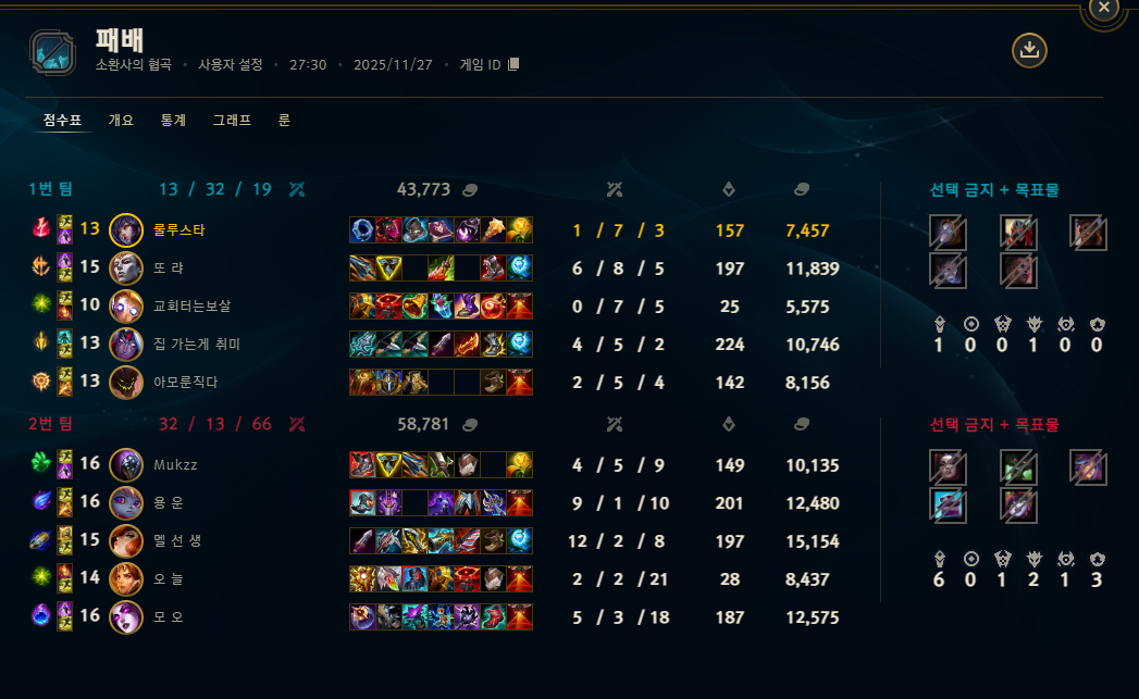 | 챔피언 | 게임 수 | 승률 | K | D | A | CS |