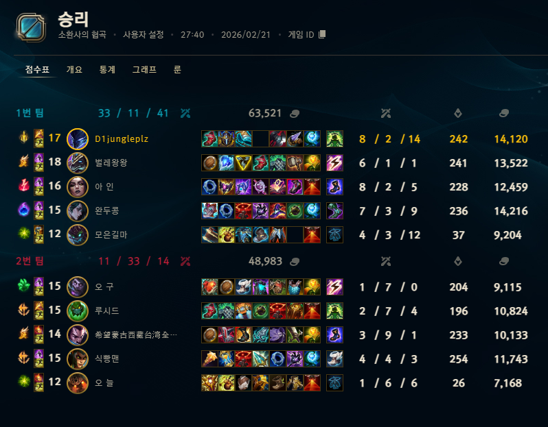 | 챔피언 | 게임 수 | 승률 | KDA | K | D | A | CS |
