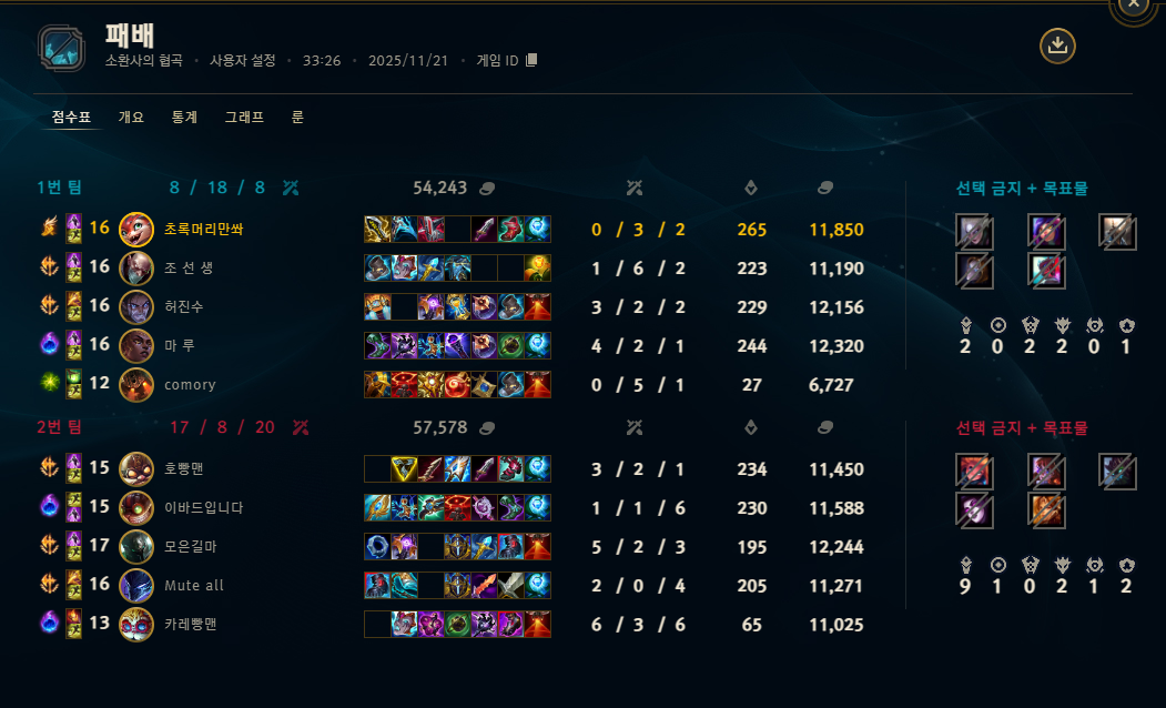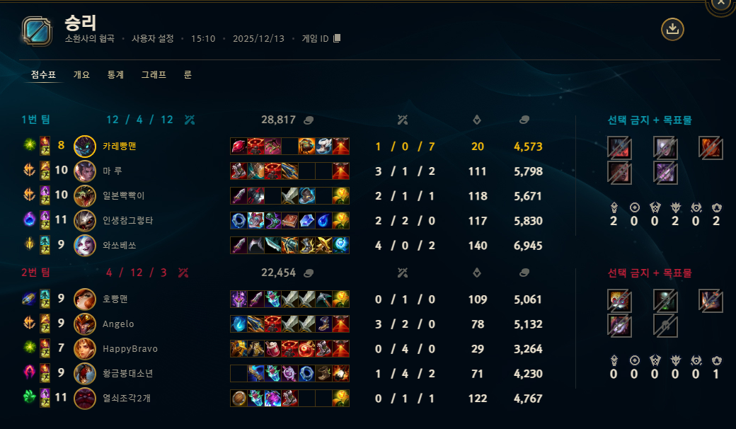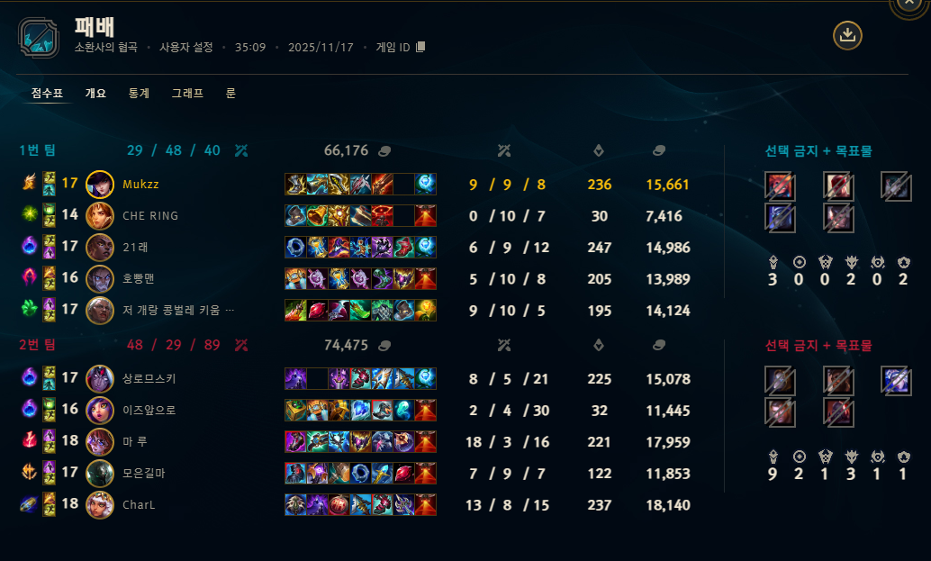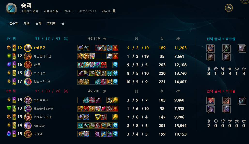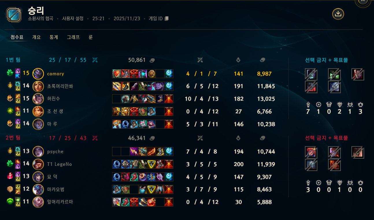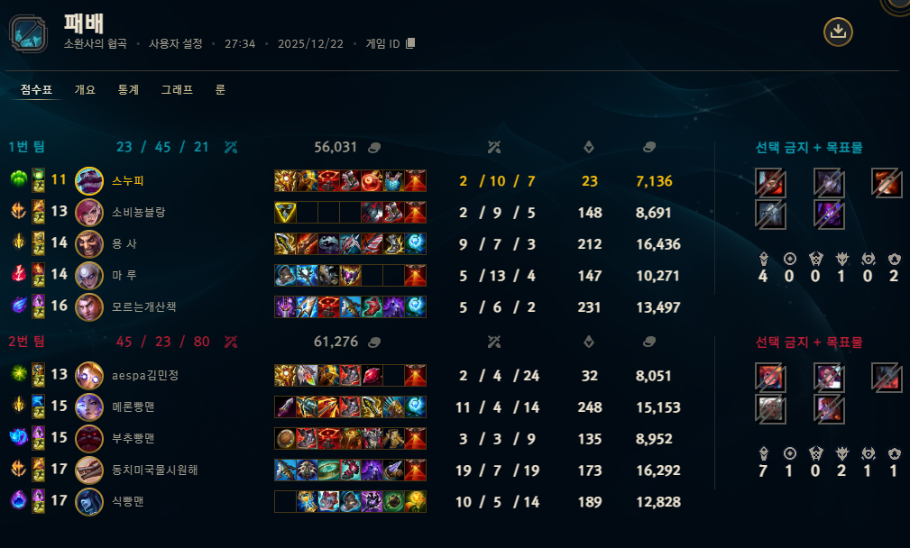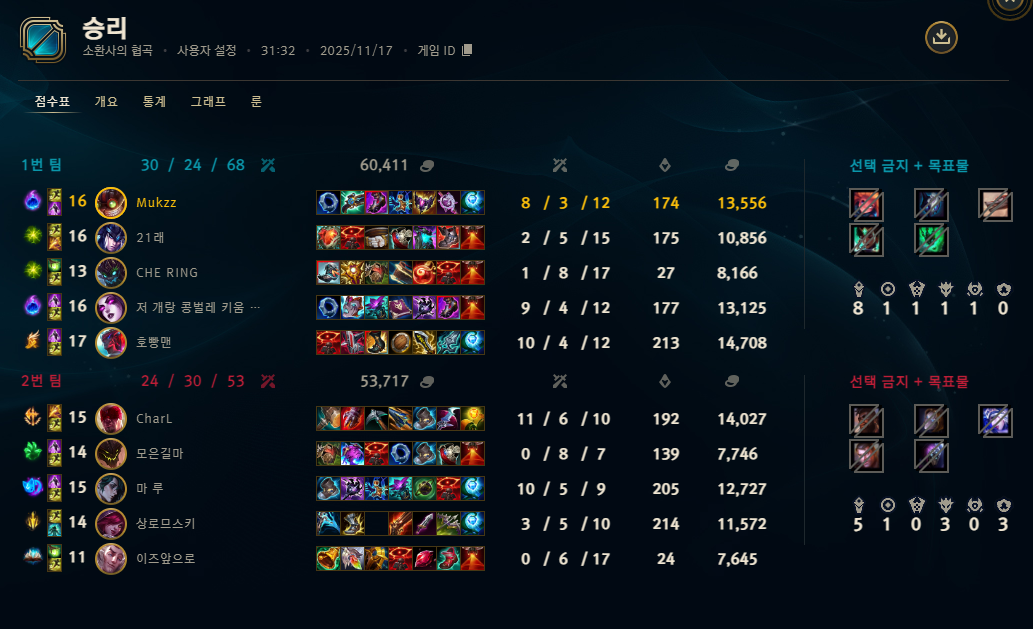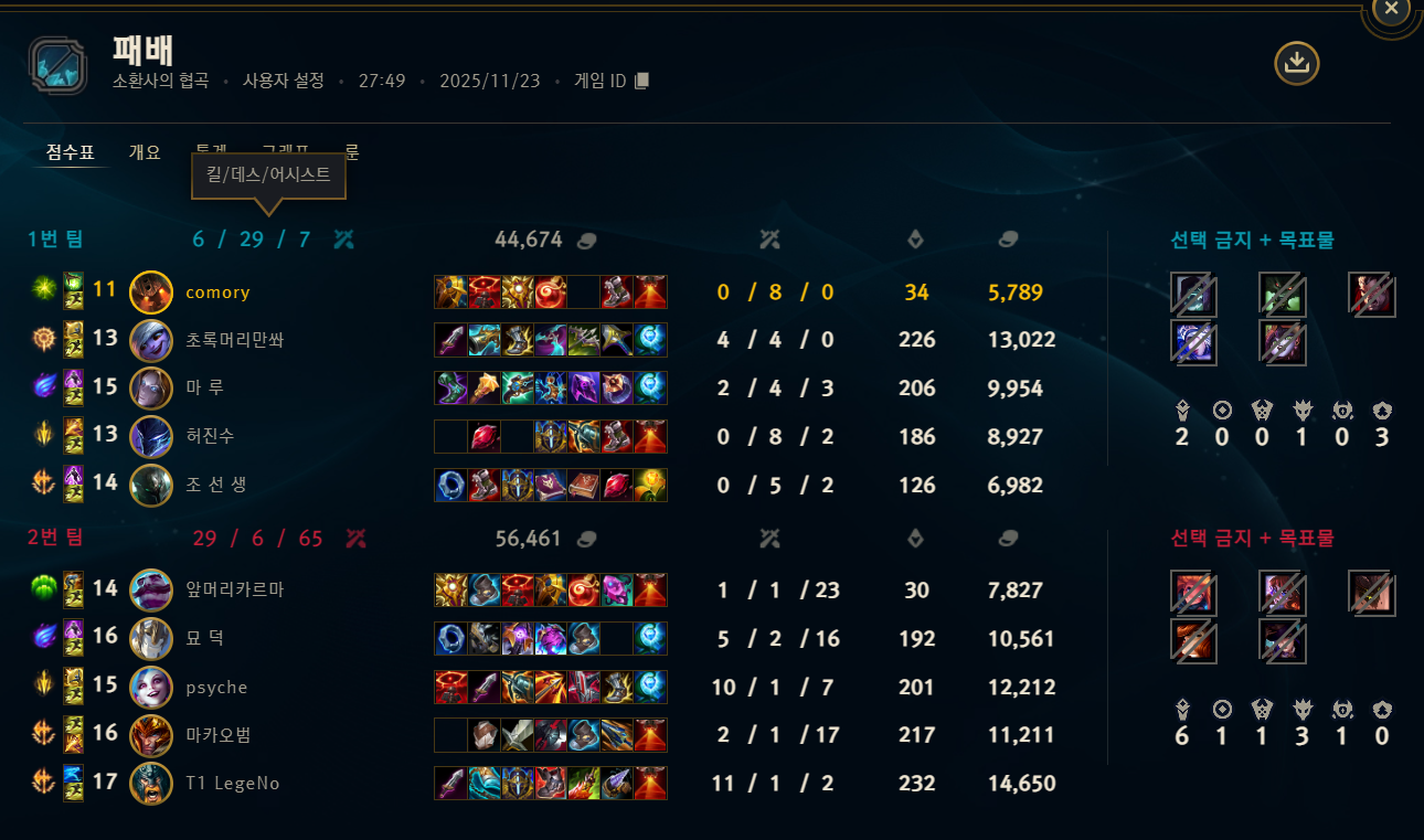 | 챔피언 | 게임 수 | 승률 | K | D | A | CS |