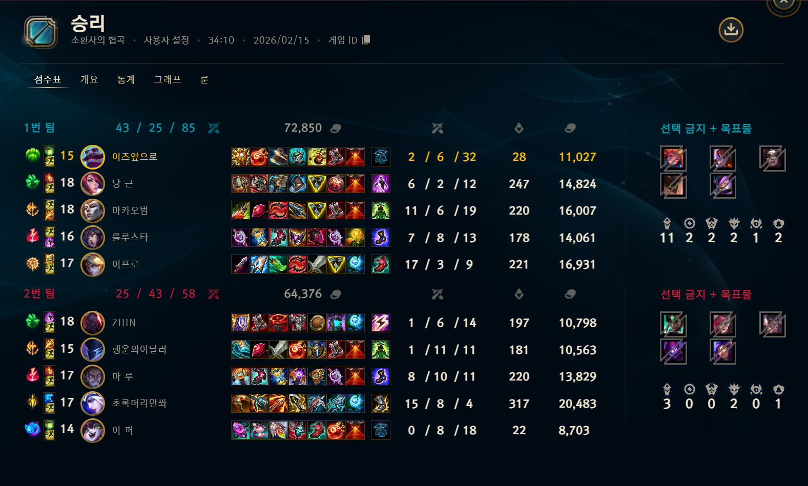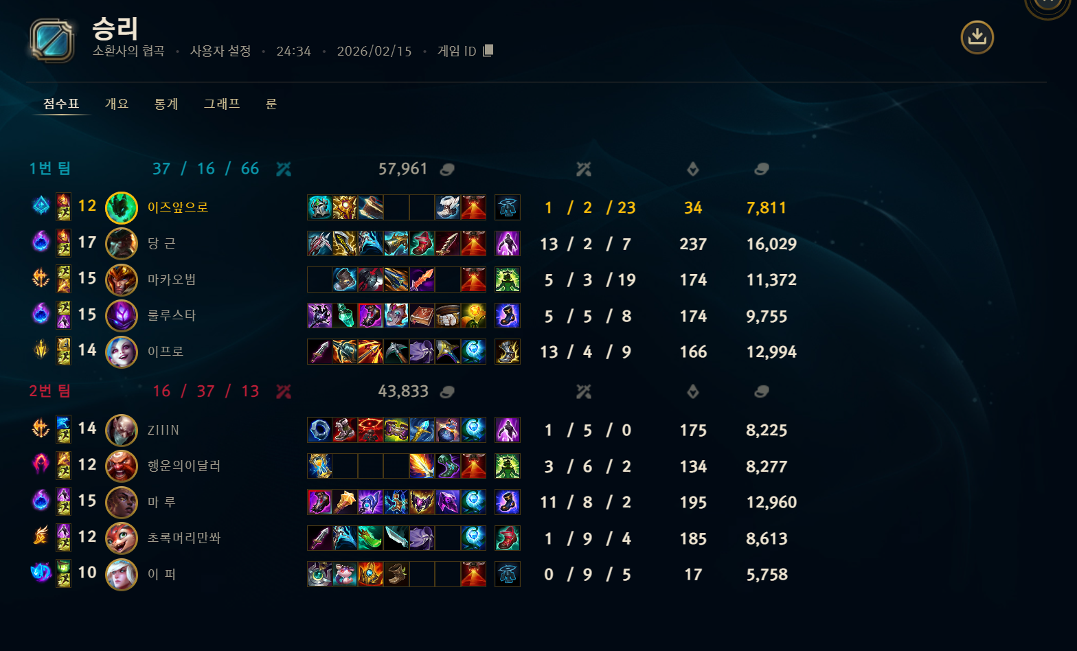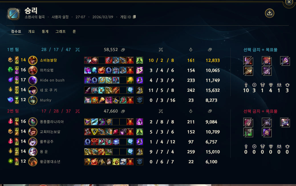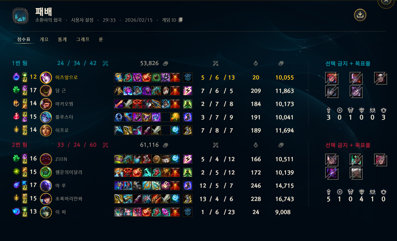 | 정글 | 1539 | (+51) | 56.1% |