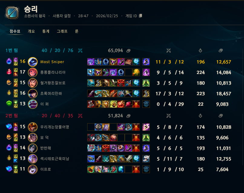 | 챔피언 | 게임 수 | 승률 | KDA | K | D | A | CS |