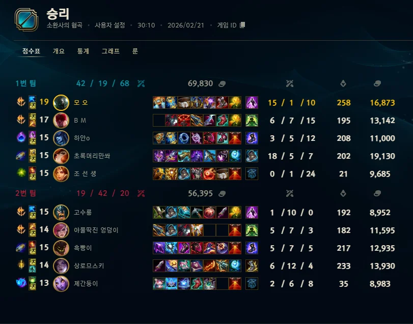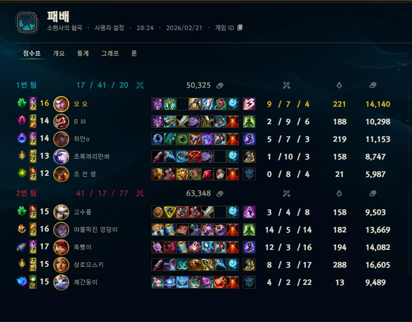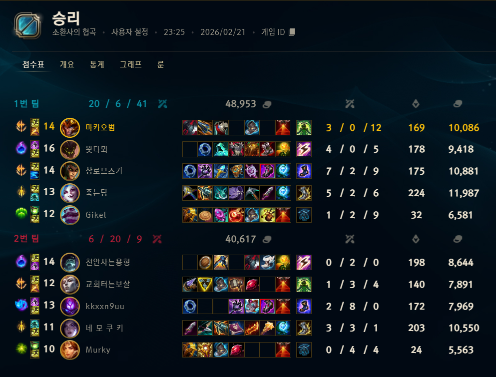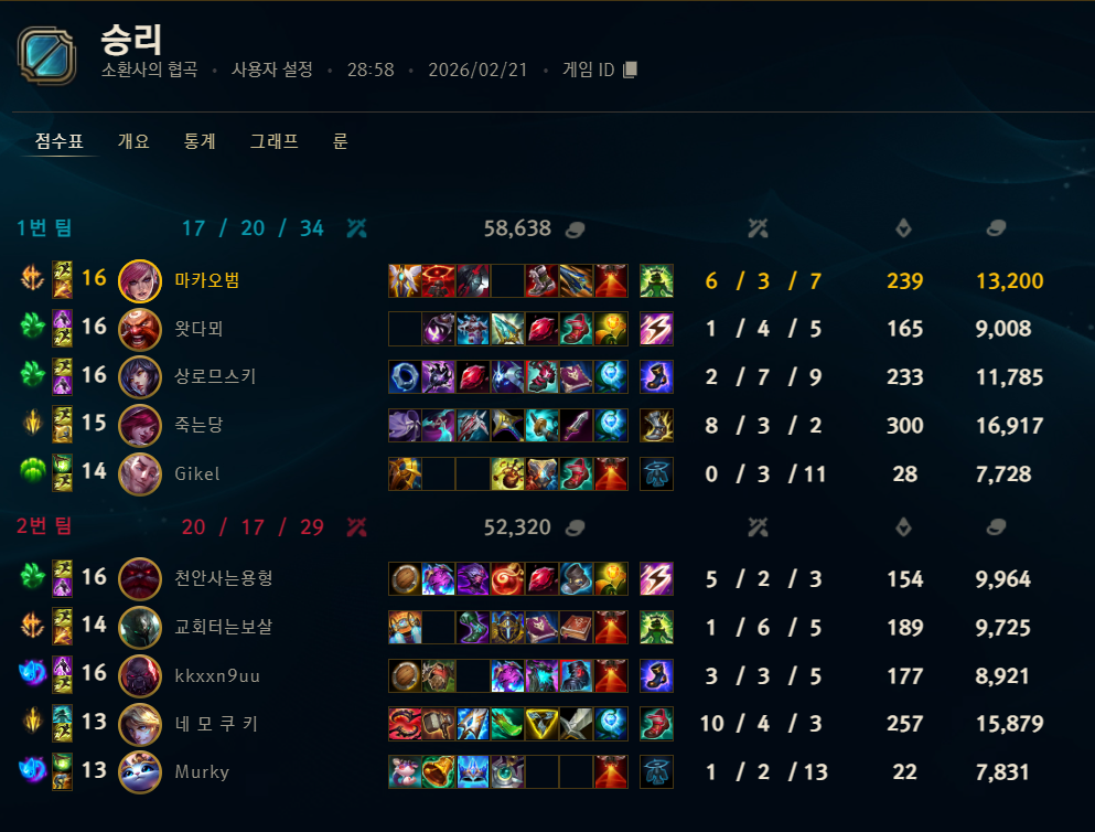 | 챔피언 | 게임 수 | 승률 | KDA | K | D | A | CS |