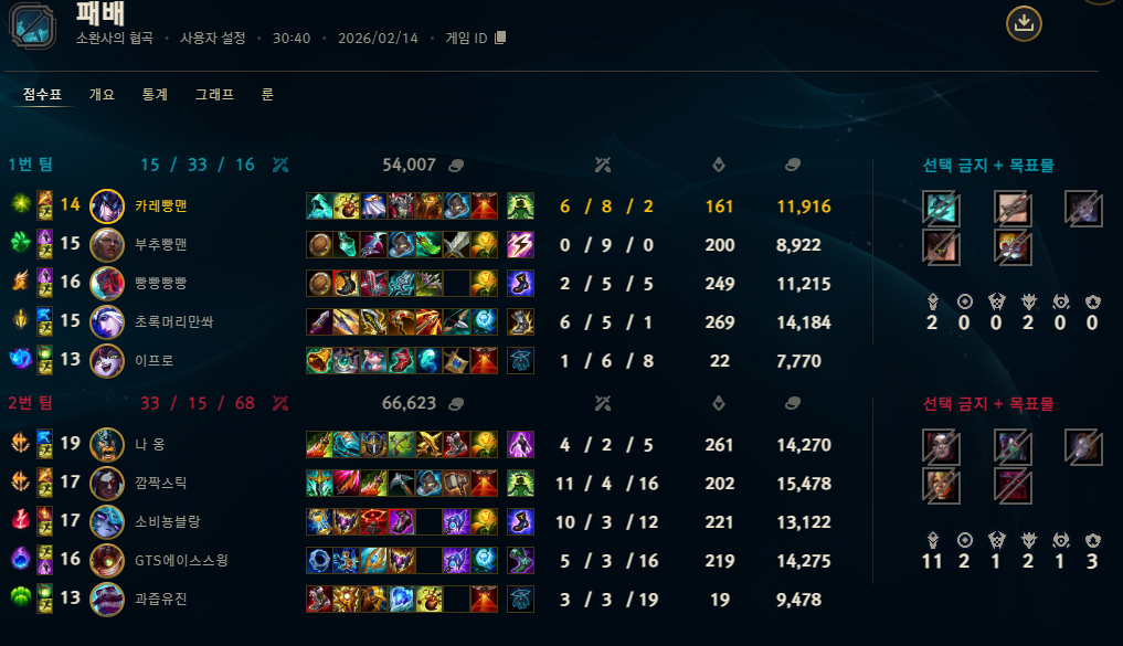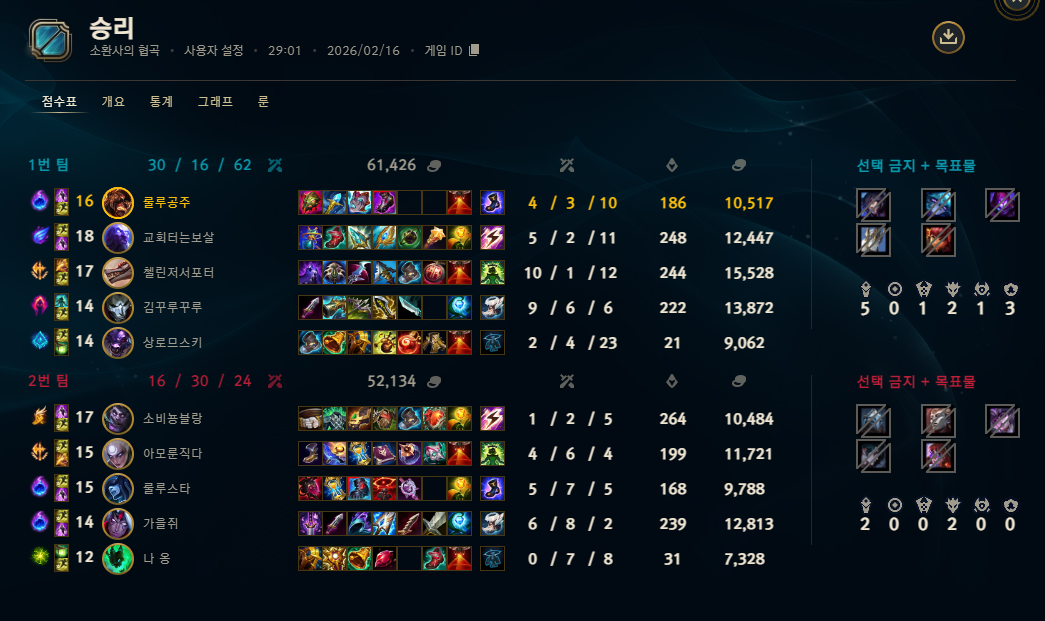 | 정글 | 1308 | (-57) | 42.6% |