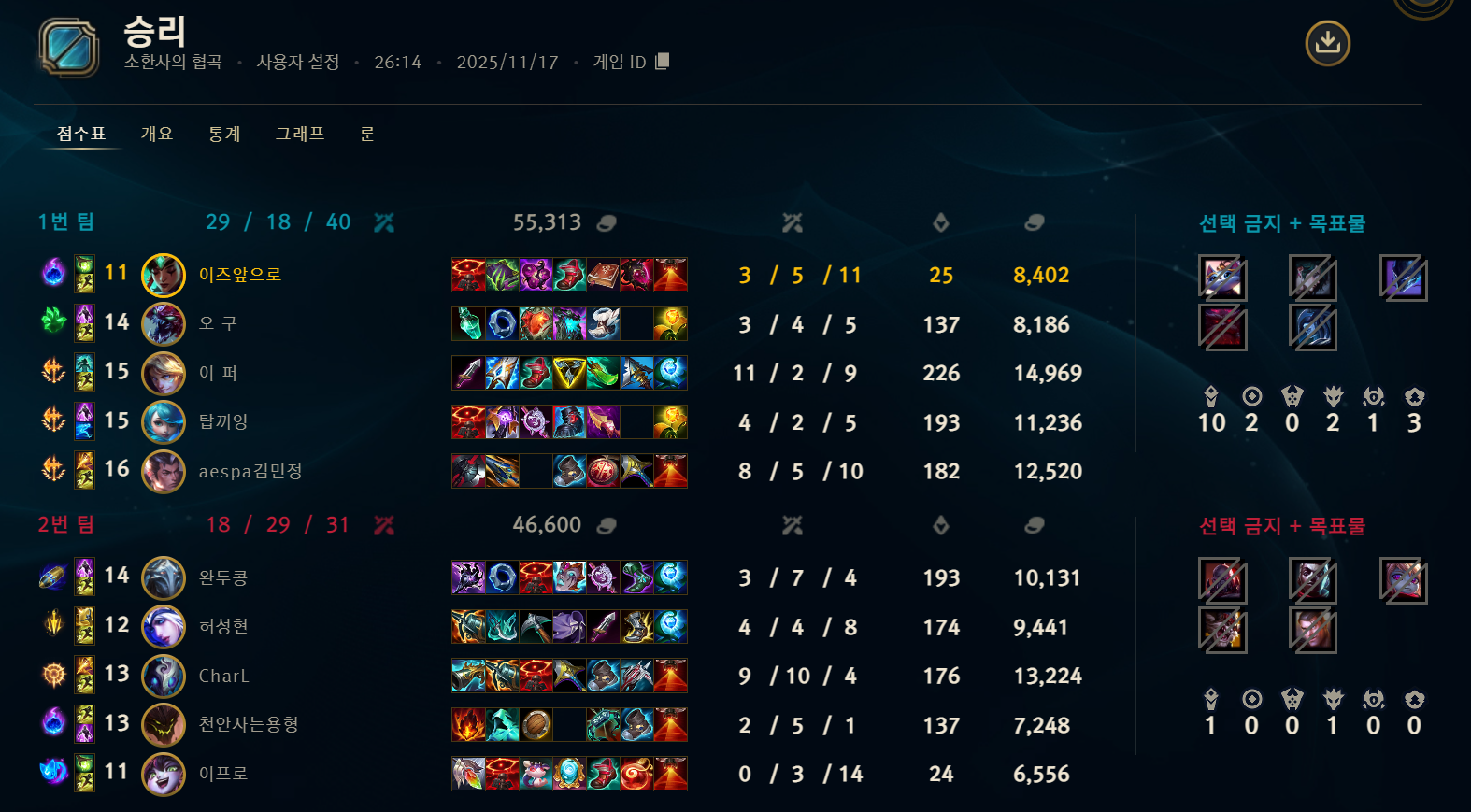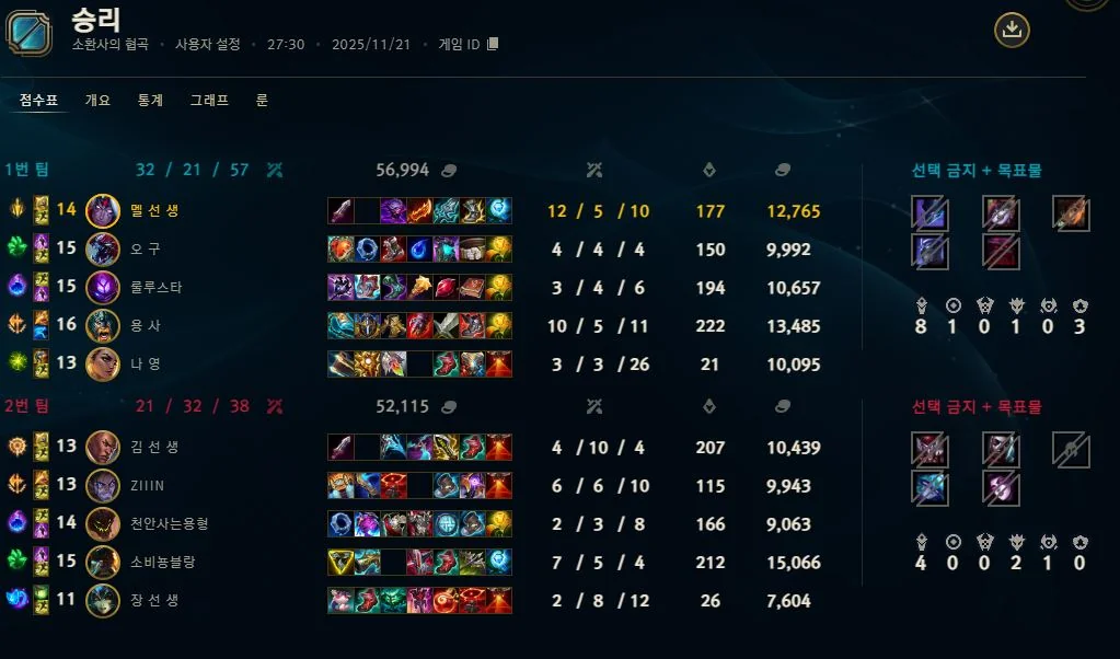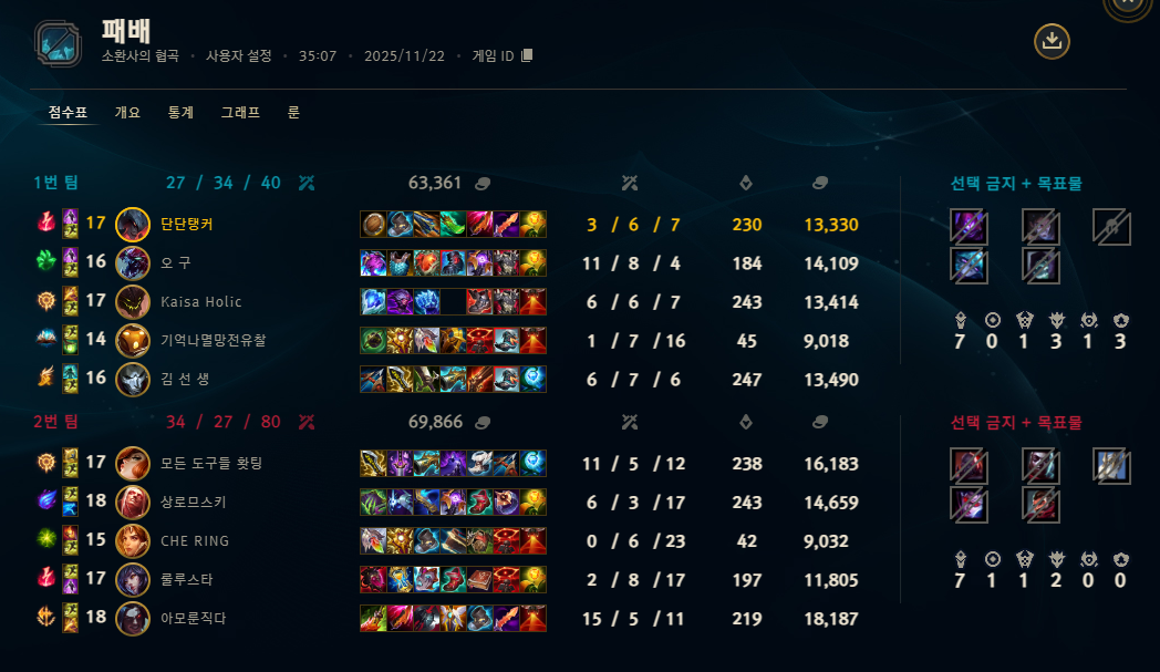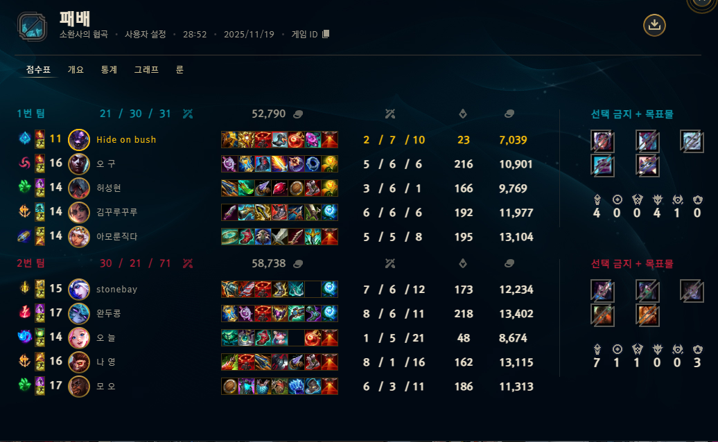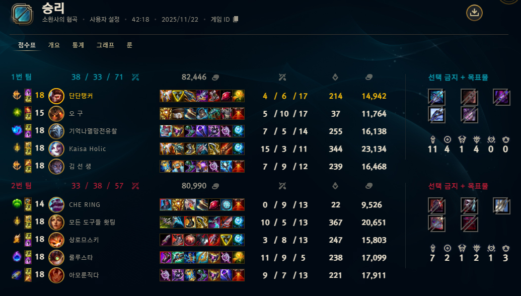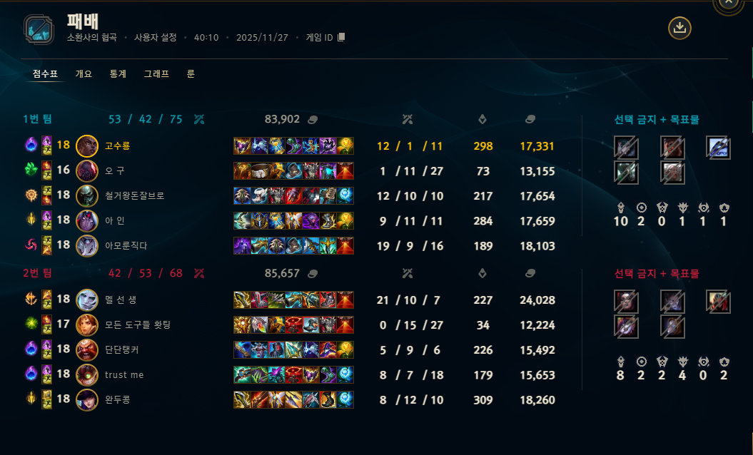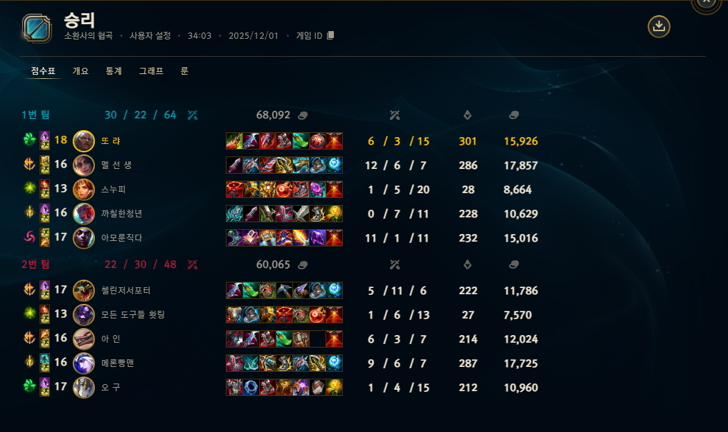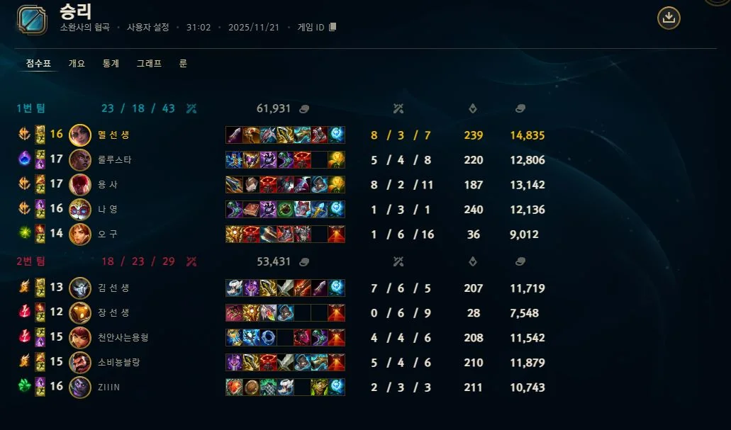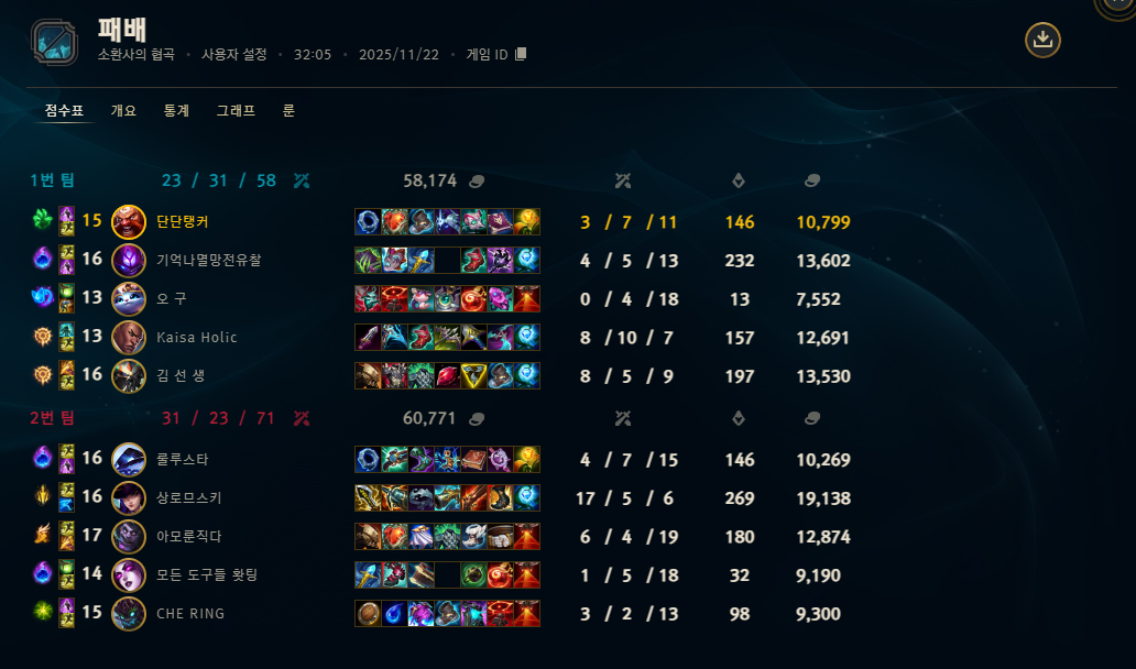 | 챔피언 | 게임 수 | 승률 | K | D | A | CS |