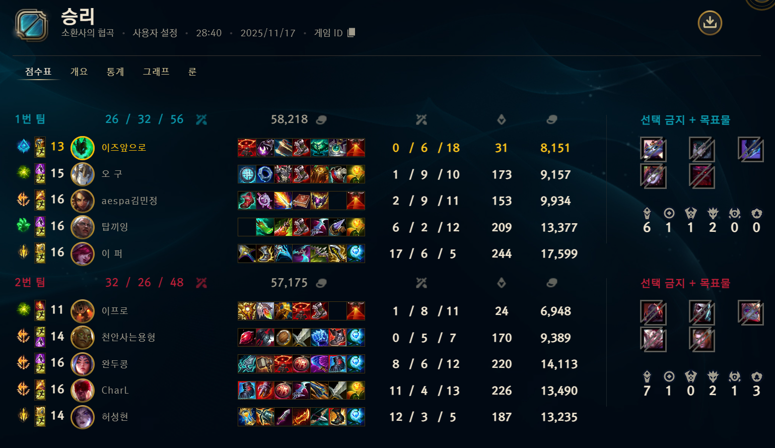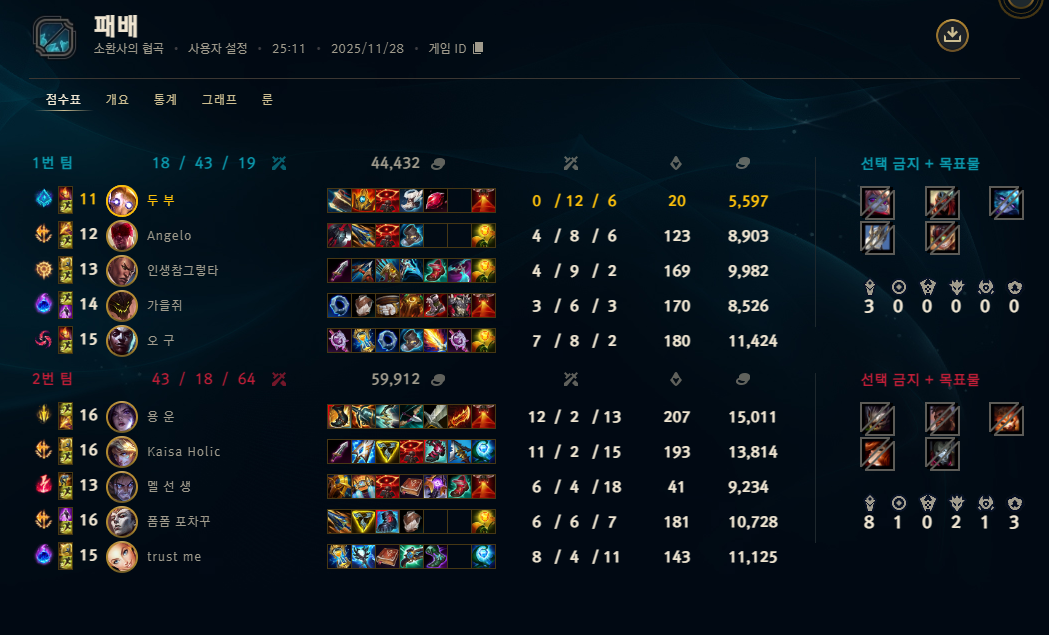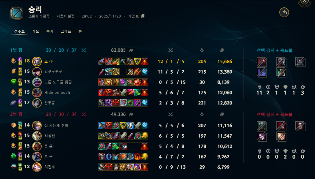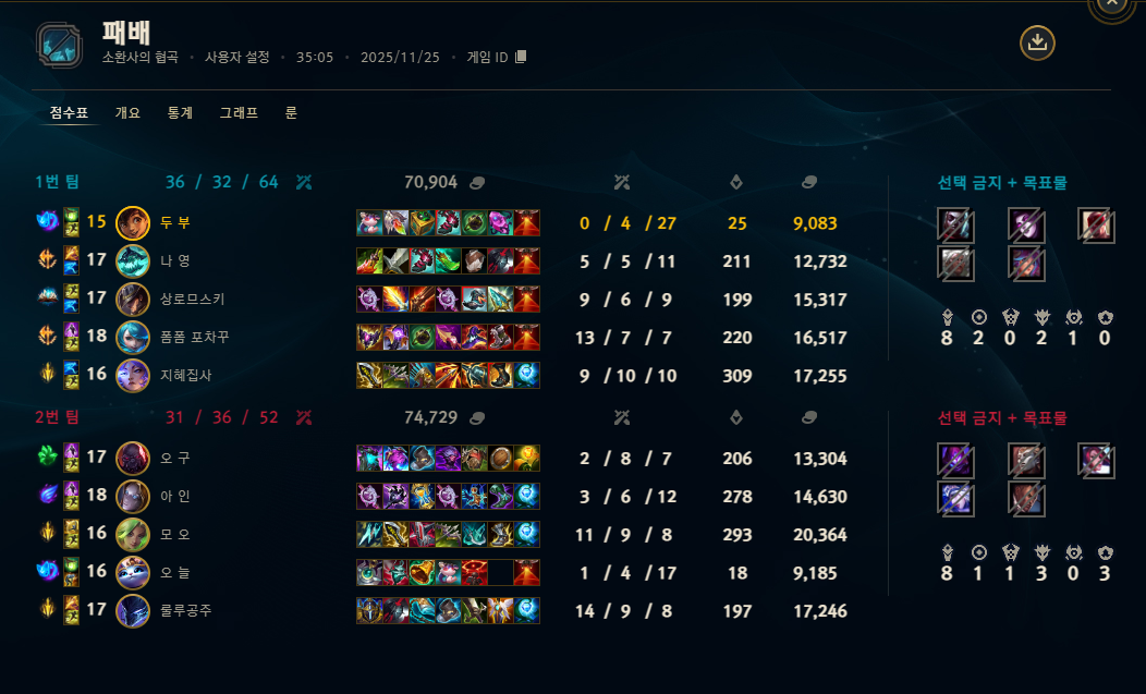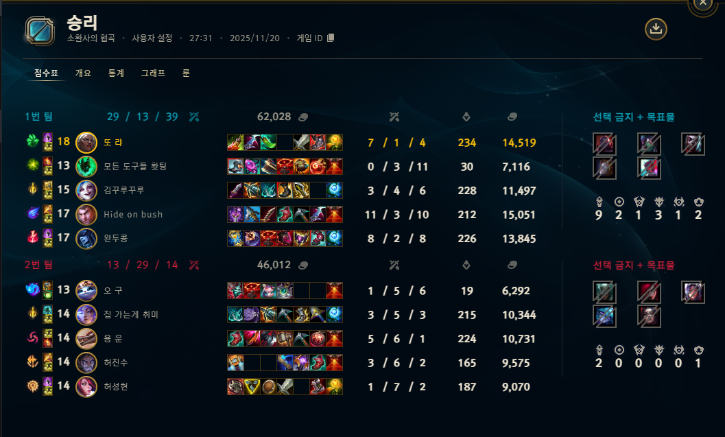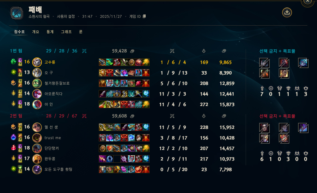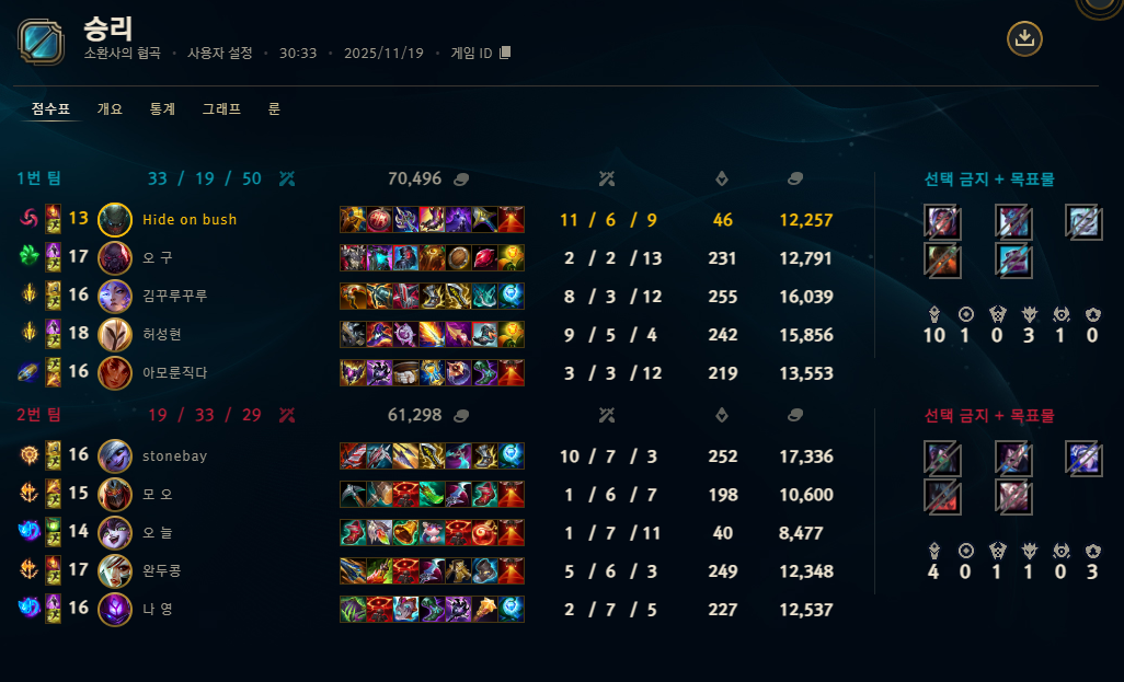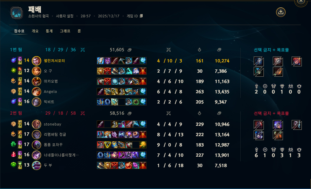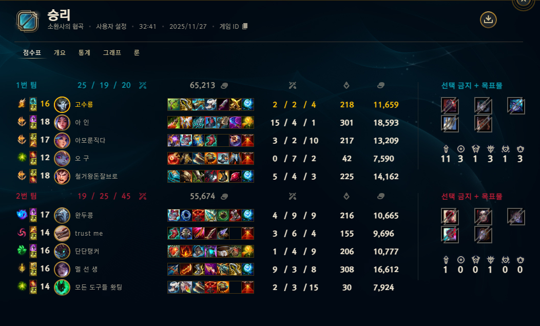 | 챔피언 | 게임 수 | 승률 | K | D | A | CS |