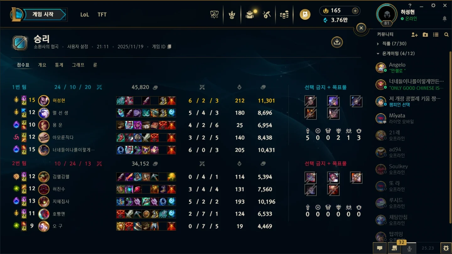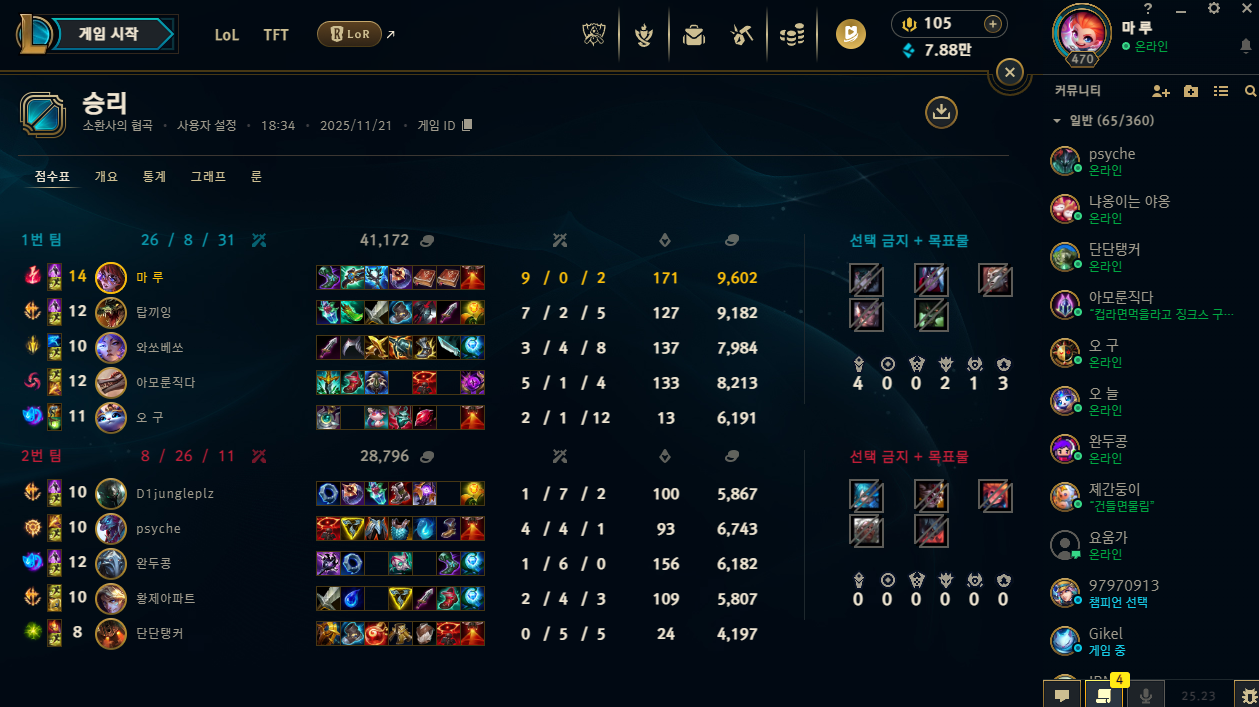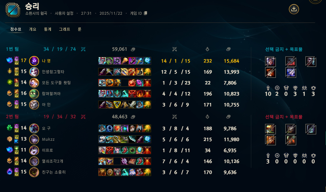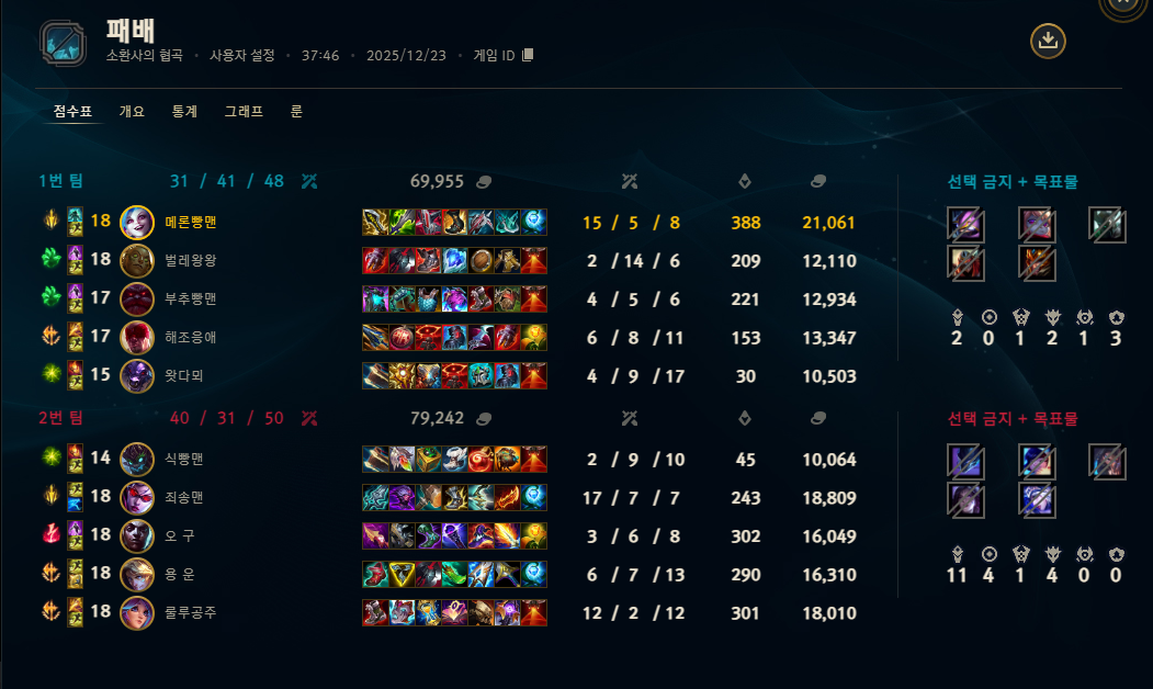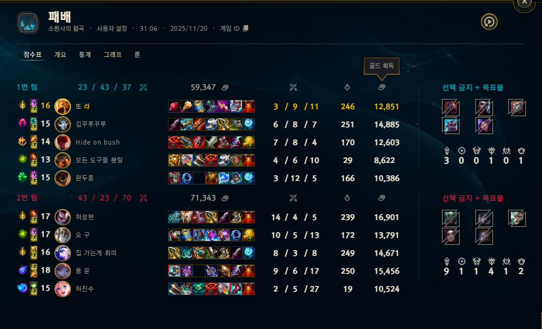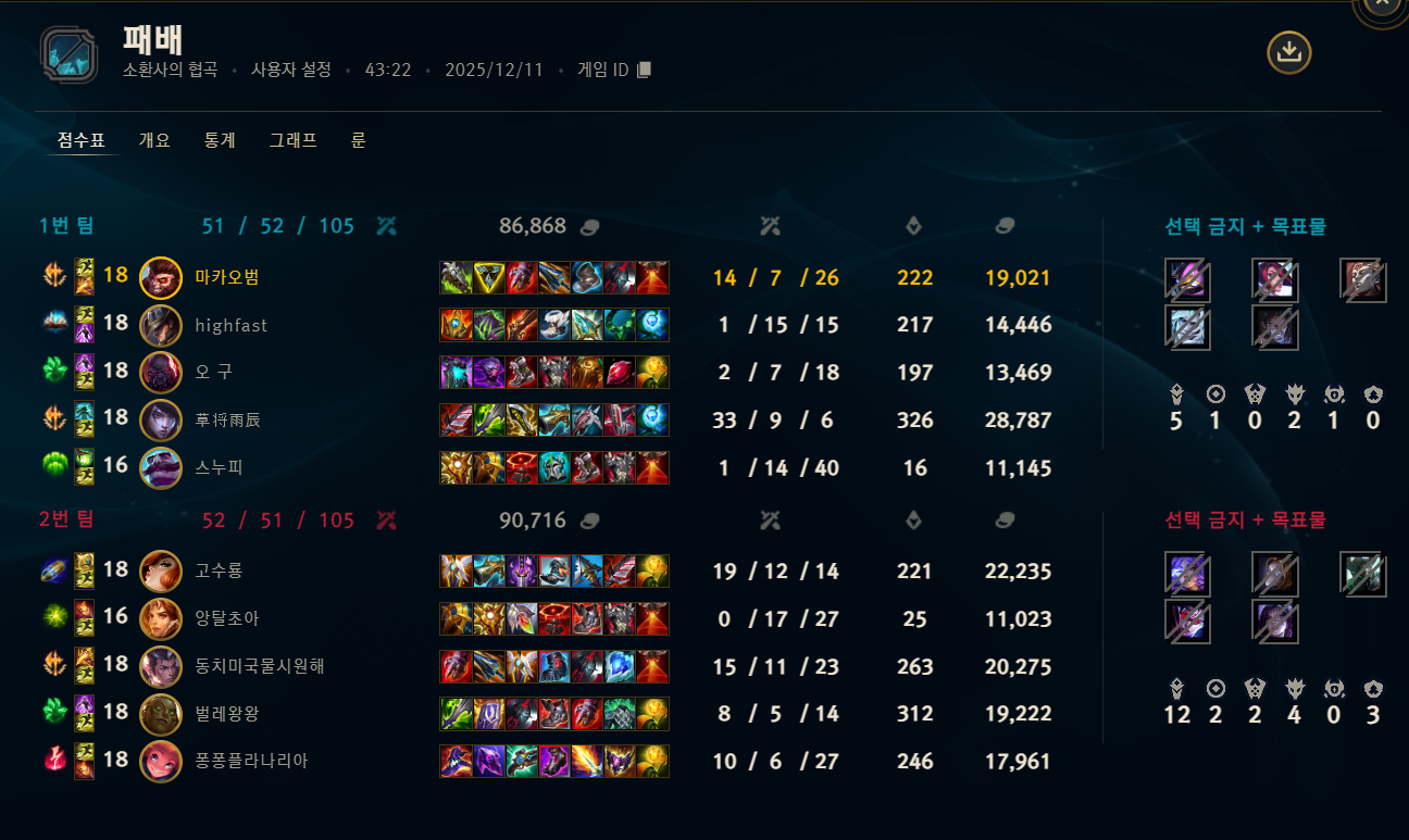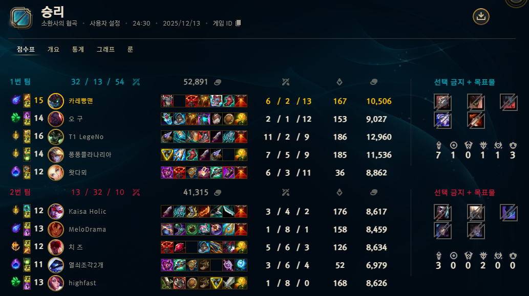 | 챔피언 | 게임 수 | 승률 | K | D | A | CS |