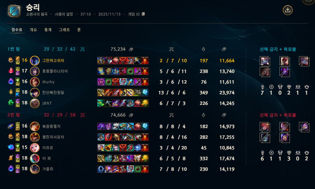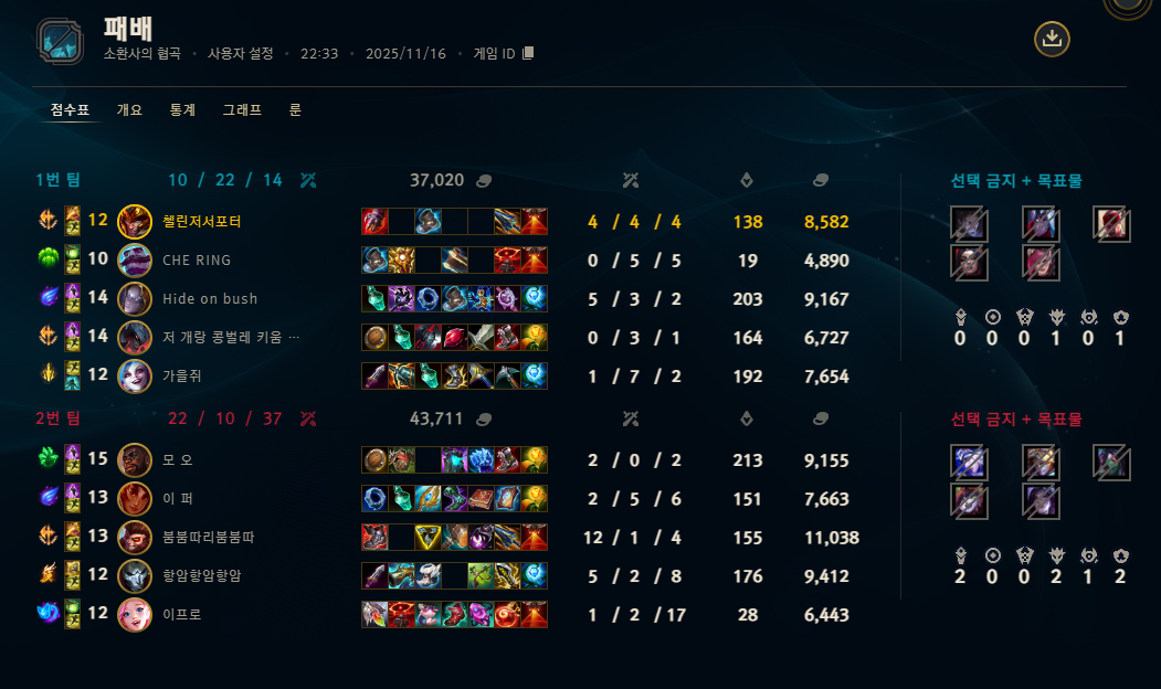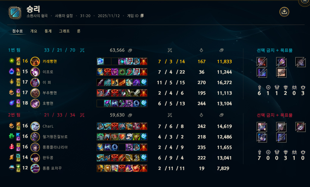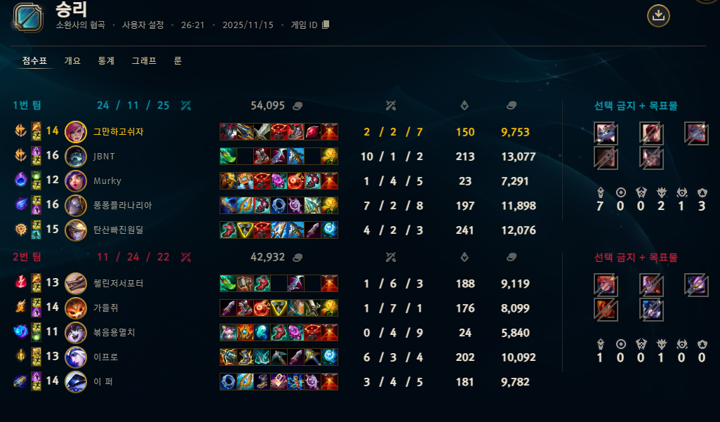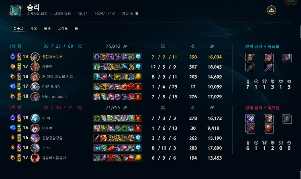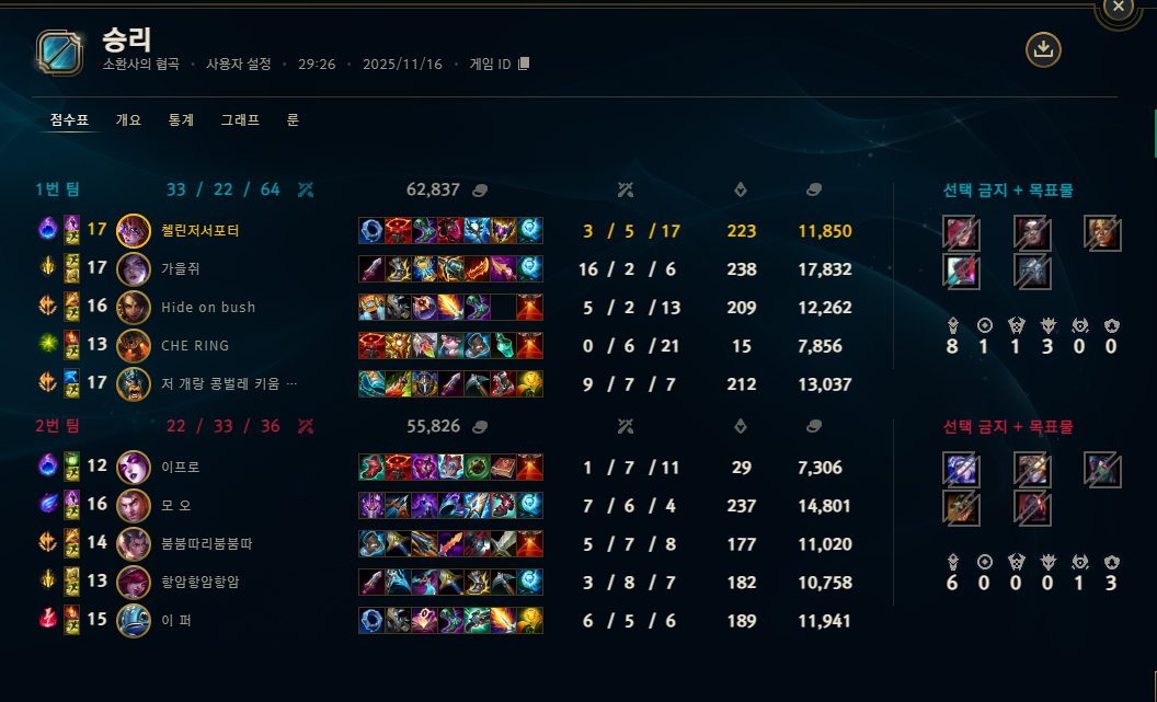 | 챔피언 | 게임 수 | 승률 | K | D | A | CS |