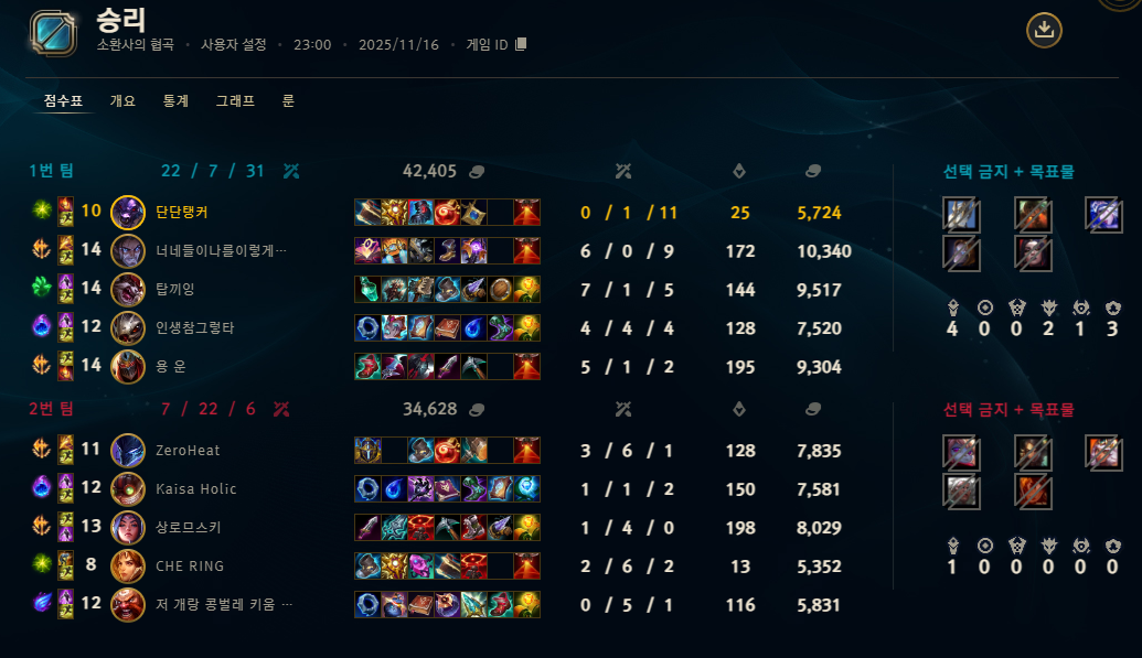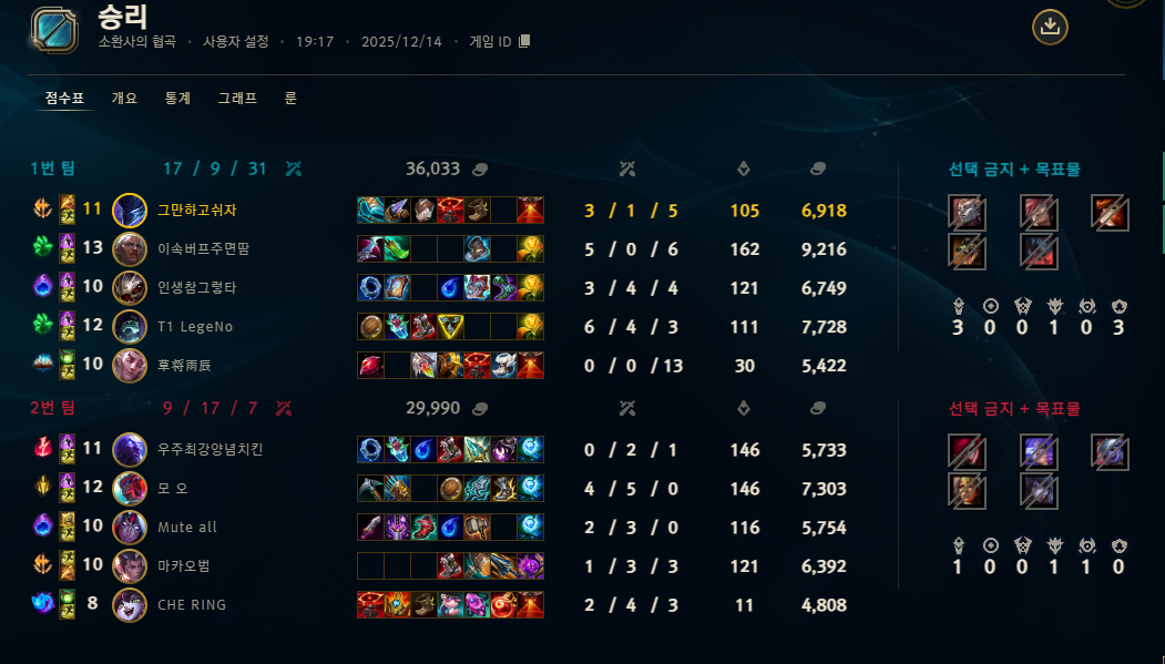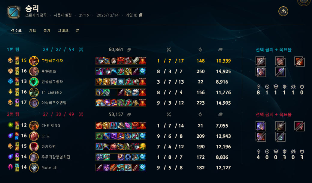 | 챔피언 | 게임 수 | 승률 | K | D | A | CS |