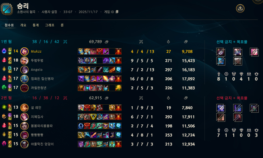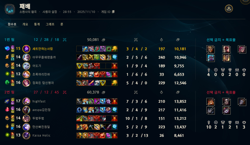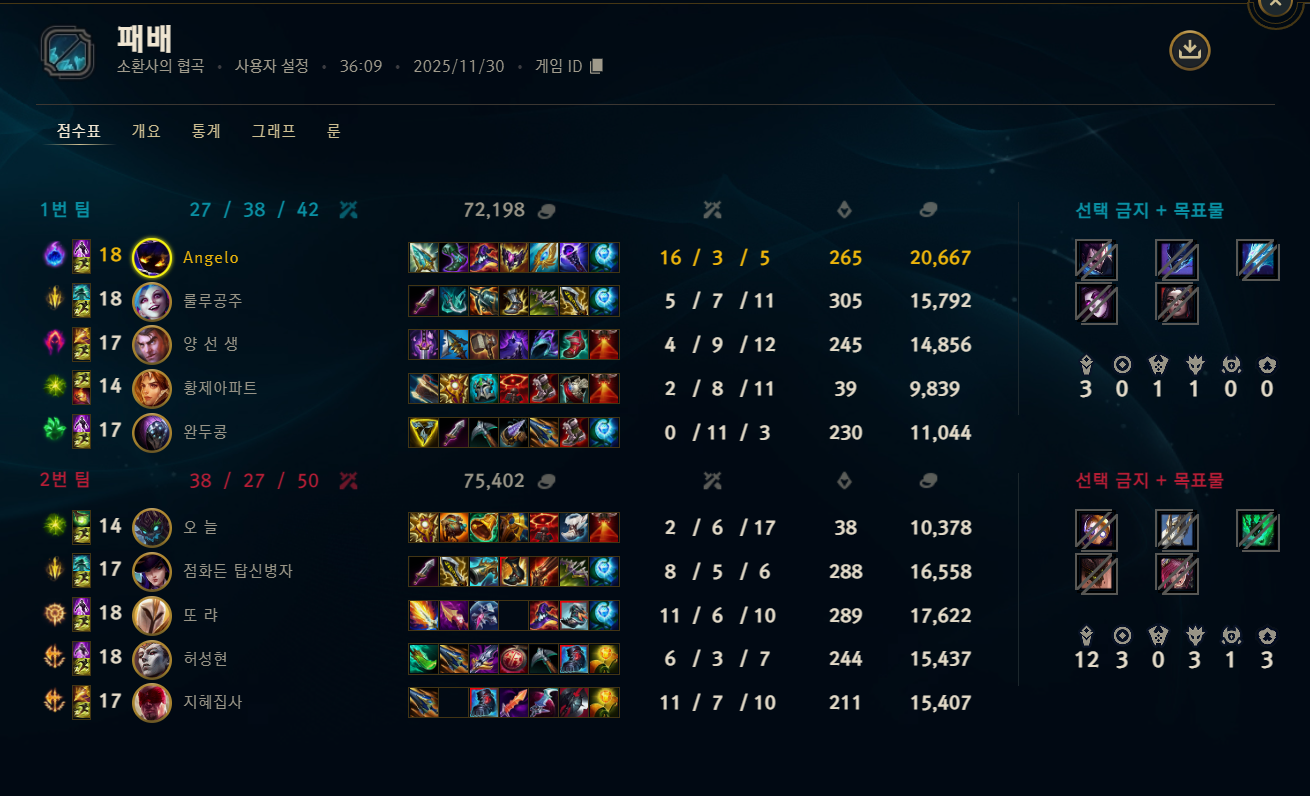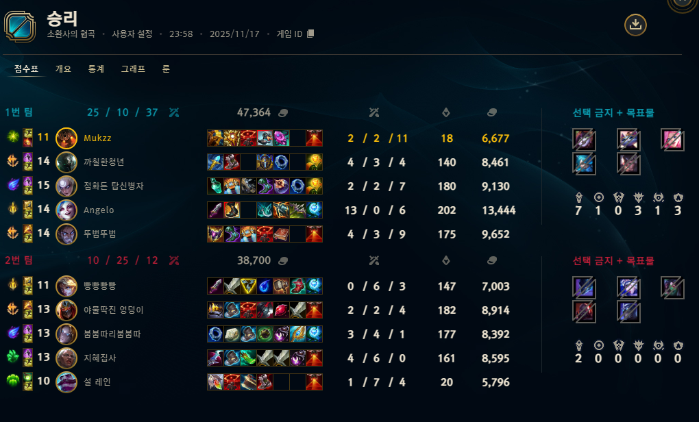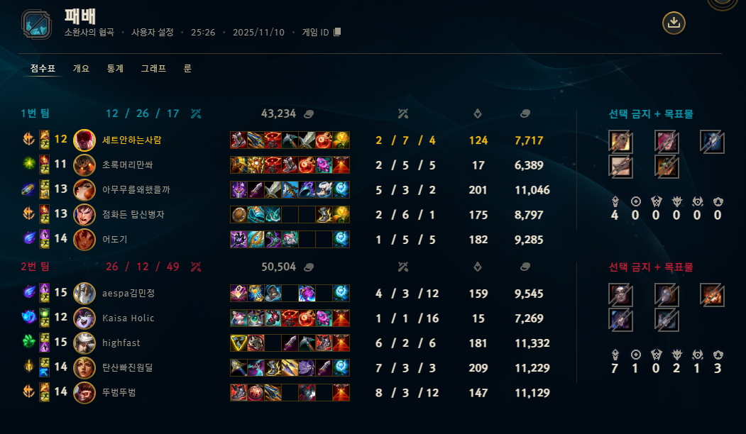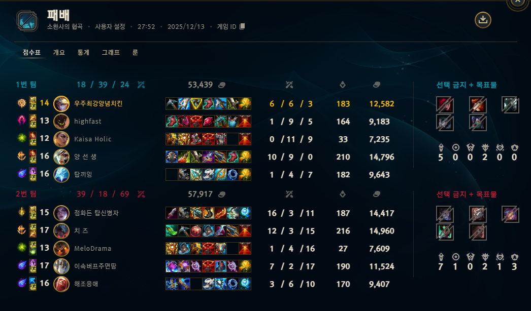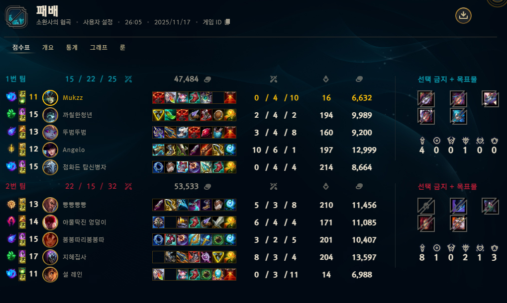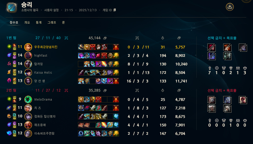 | 챔피언 | 게임 수 | 승률 | K | D | A | CS |