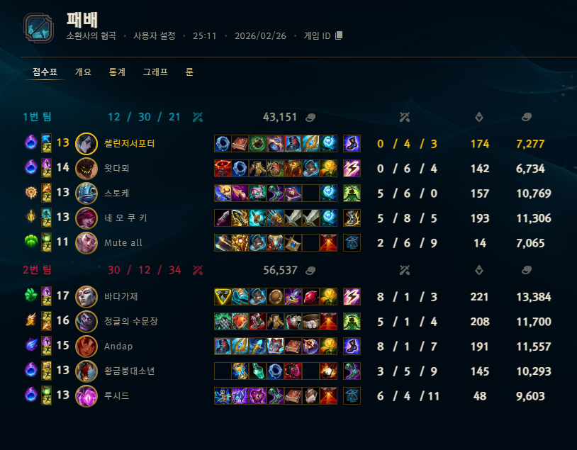 | 챔피언 | 게임 수 | 승률 | KDA | K | D | A | CS |