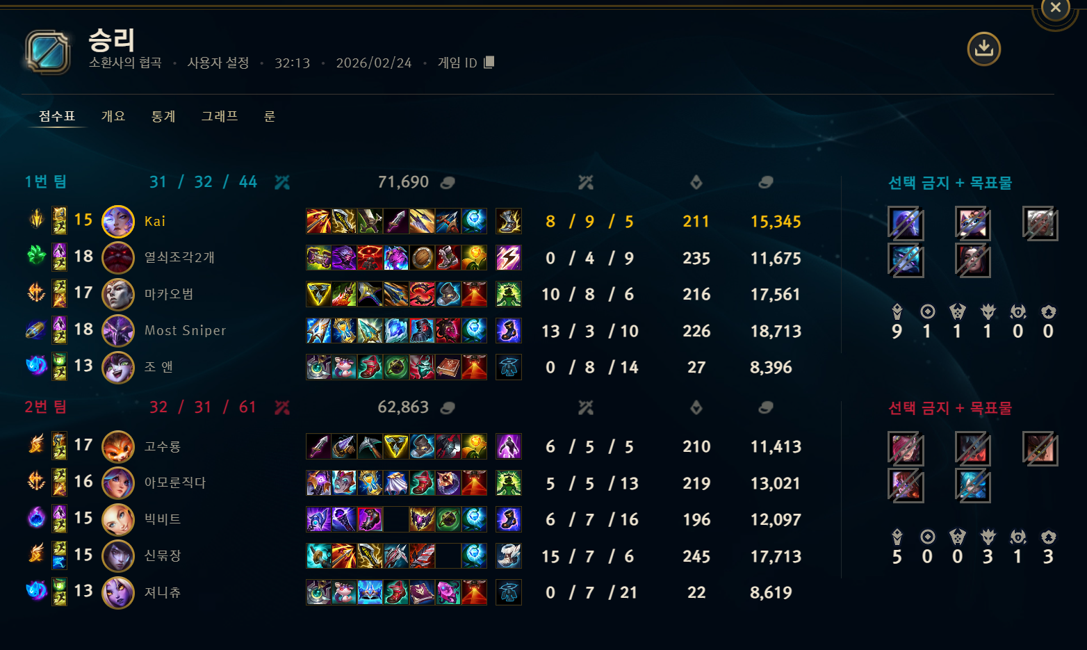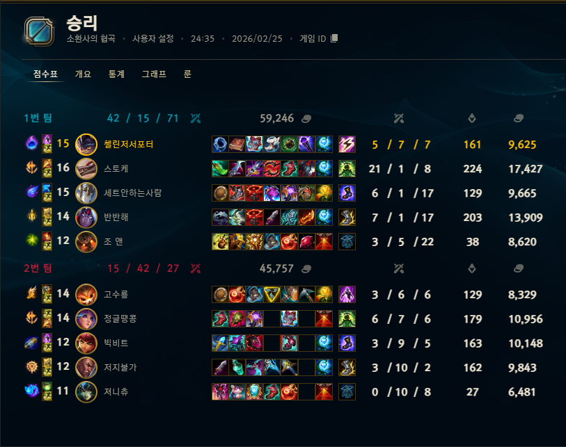 | 챔피언 | 게임 수 | 승률 | KDA | K | D | A | CS |