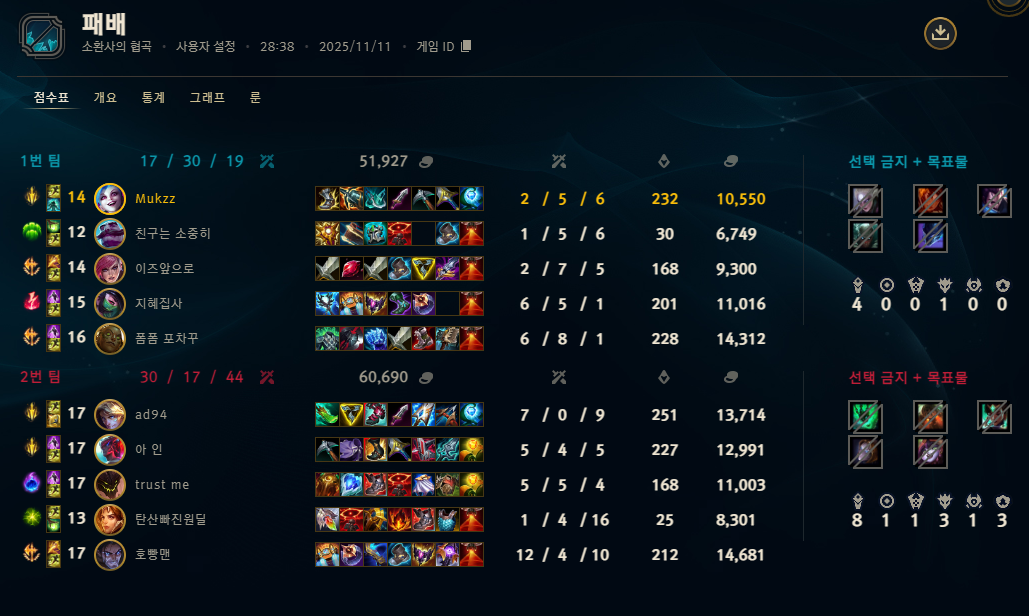| 챔피언 | 게임 수 | 승률 | K | D | A | CS |