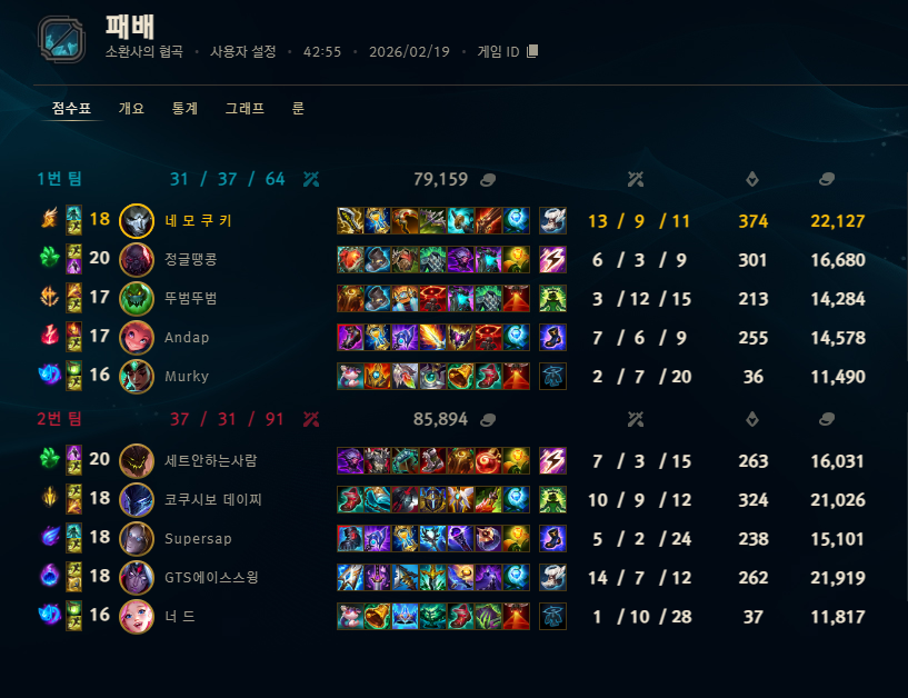 | 정글 | 2459 | (-29) | 54.7% |