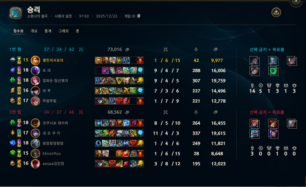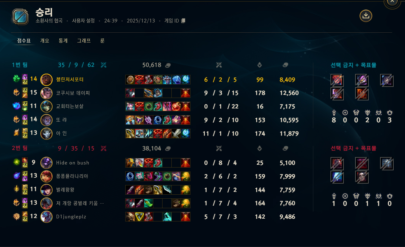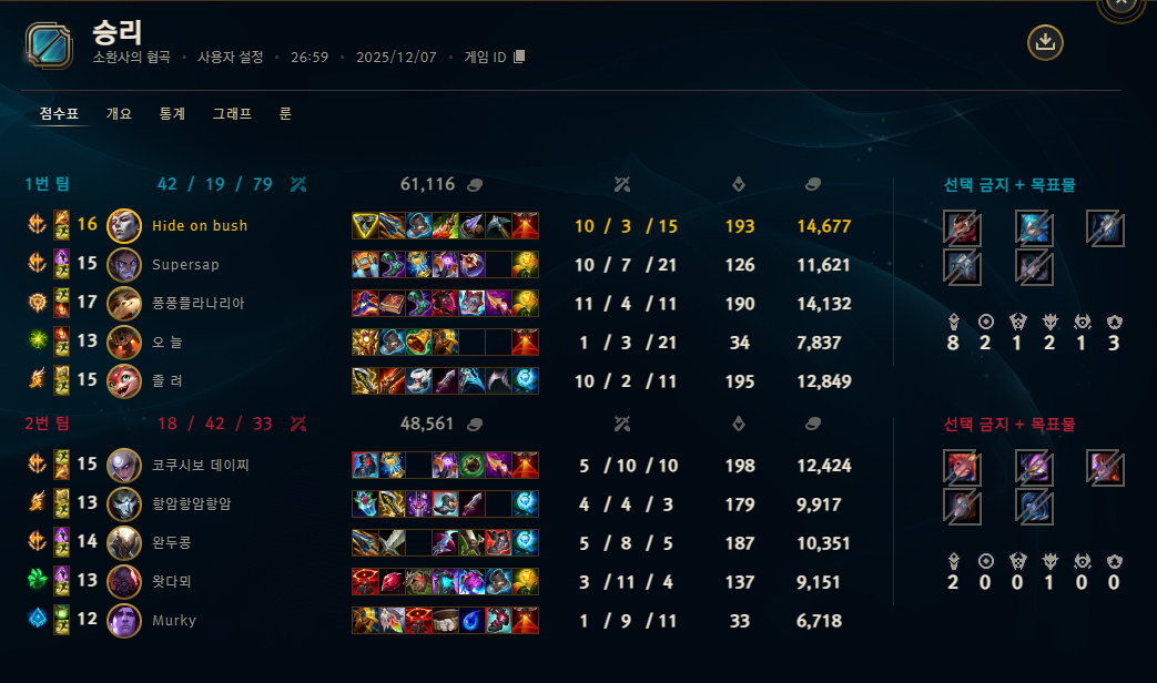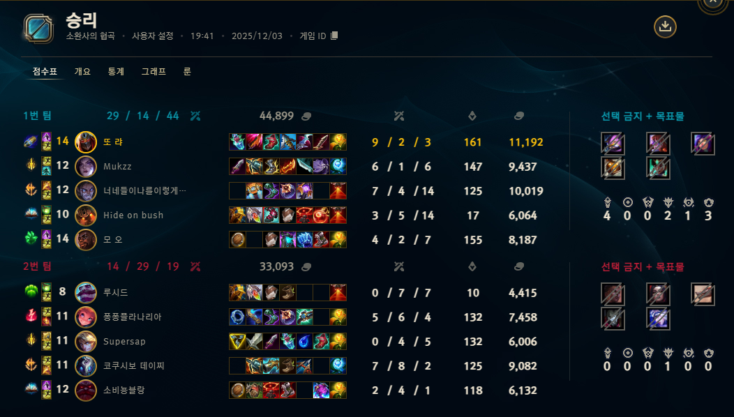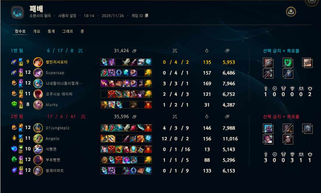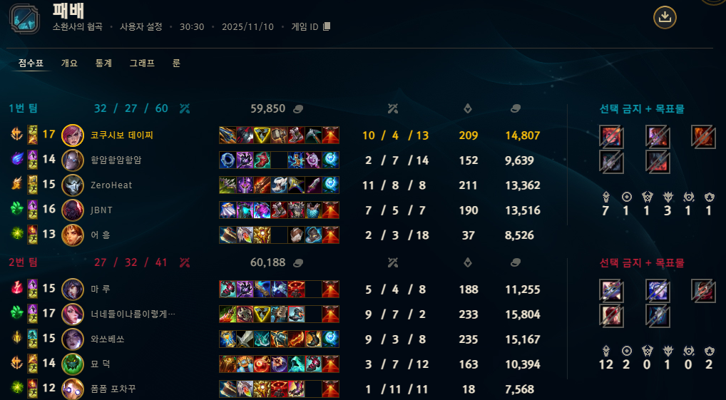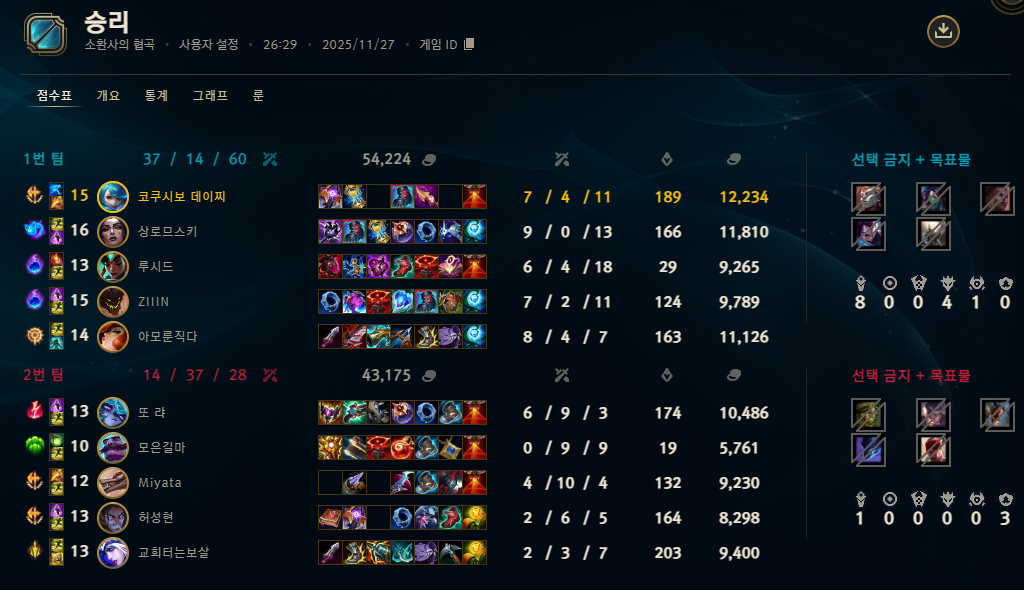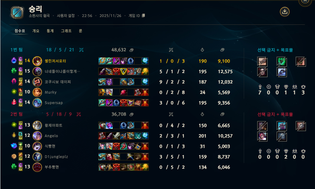 | 챔피언 | 게임 수 | 승률 | K | D | A | CS |