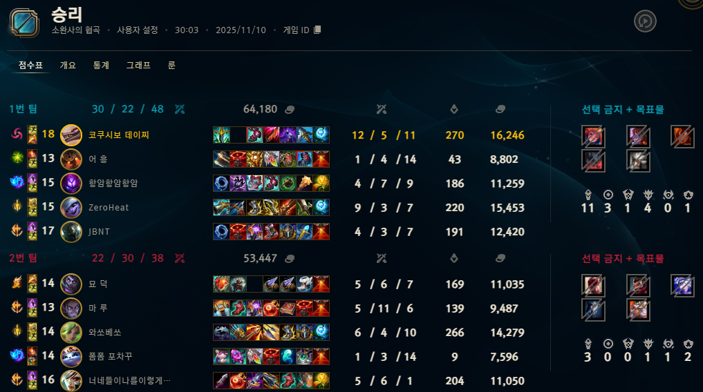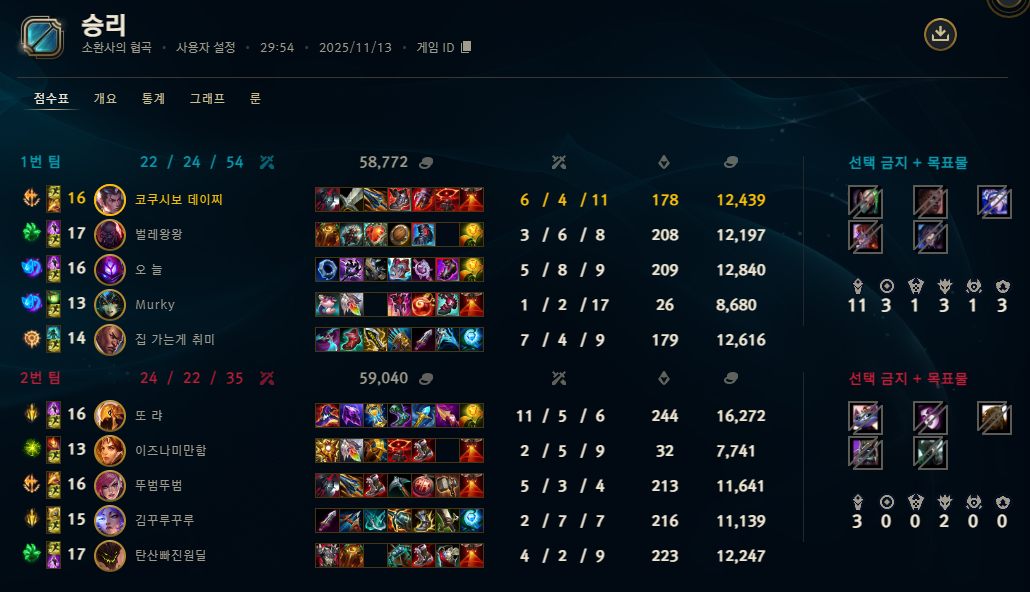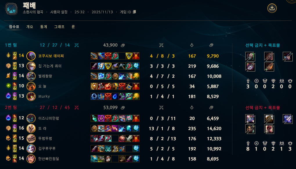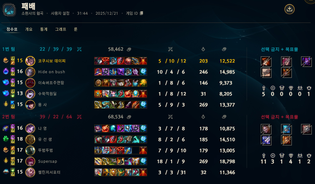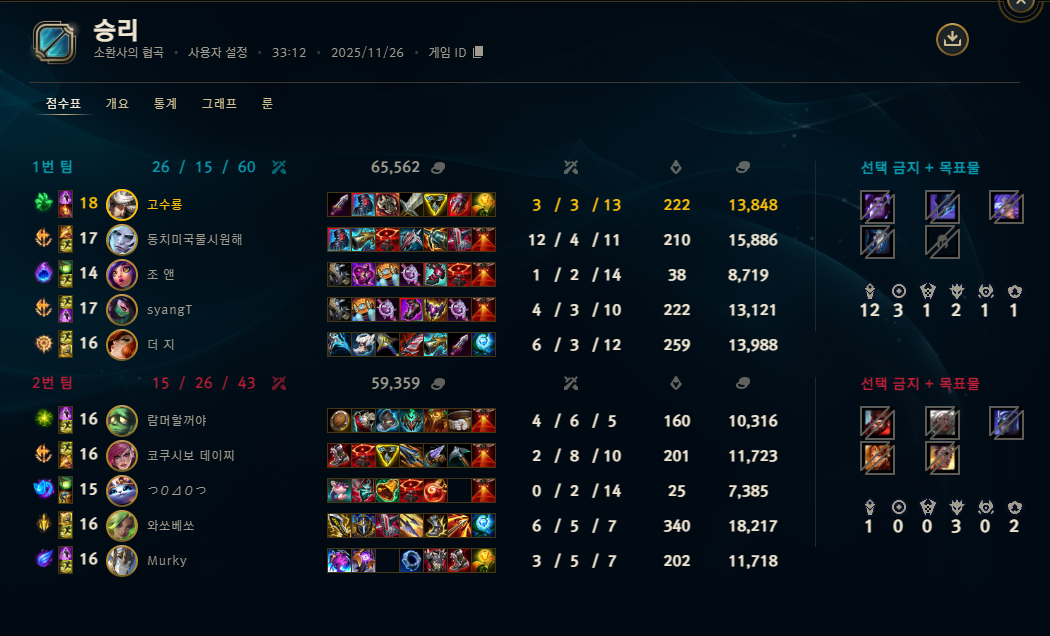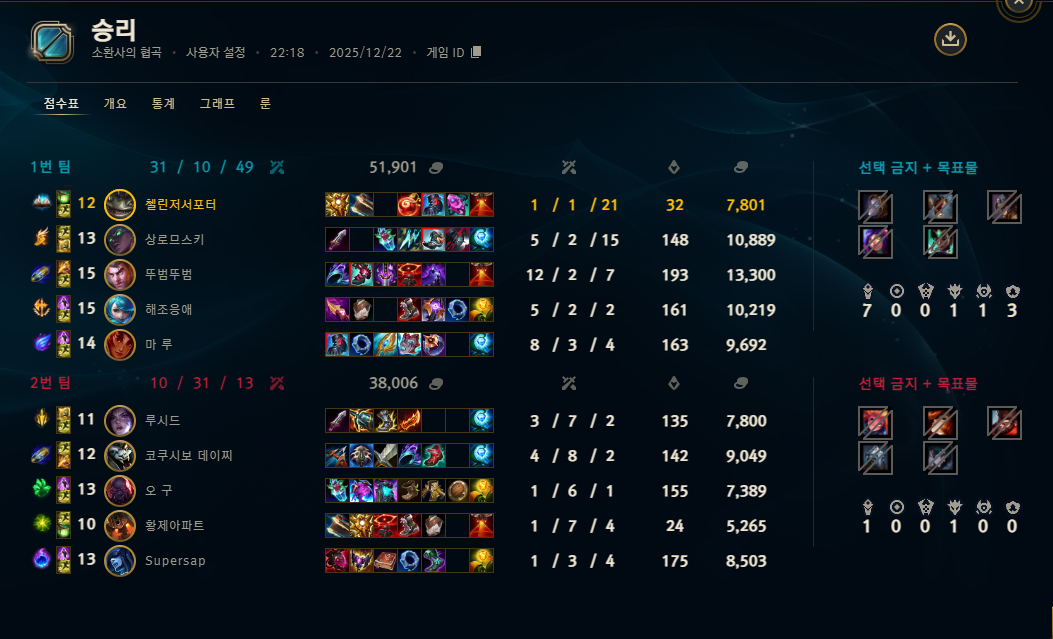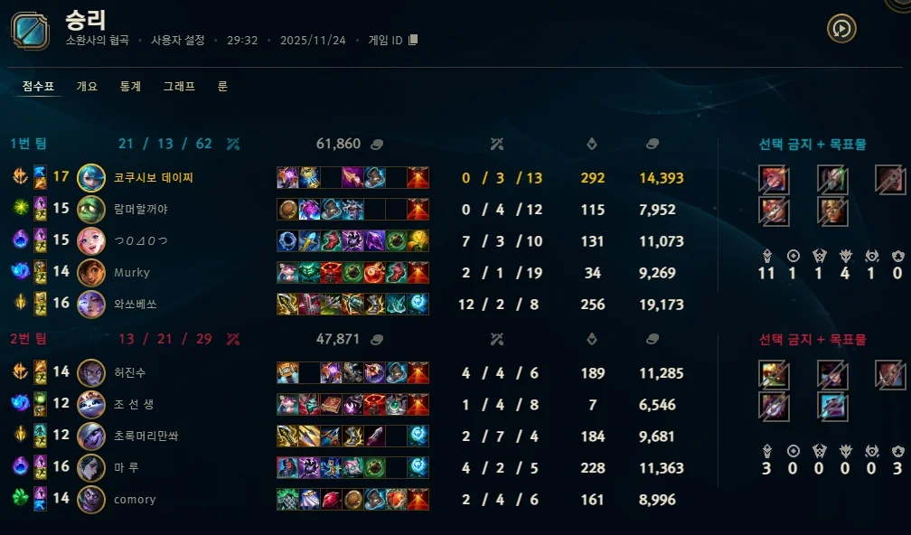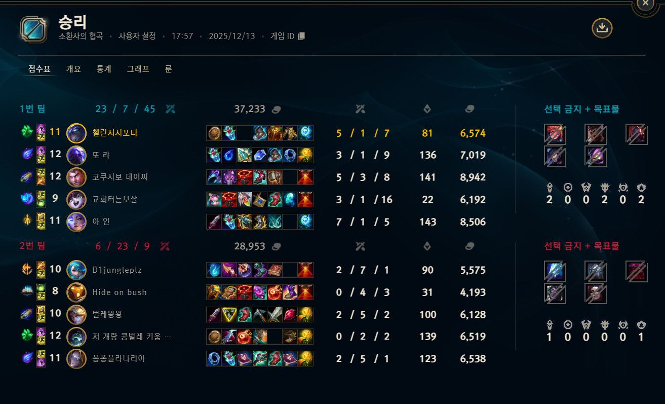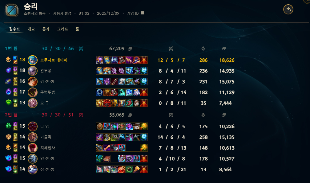 | 챔피언 | 게임 수 | 승률 | K | D | A | CS |