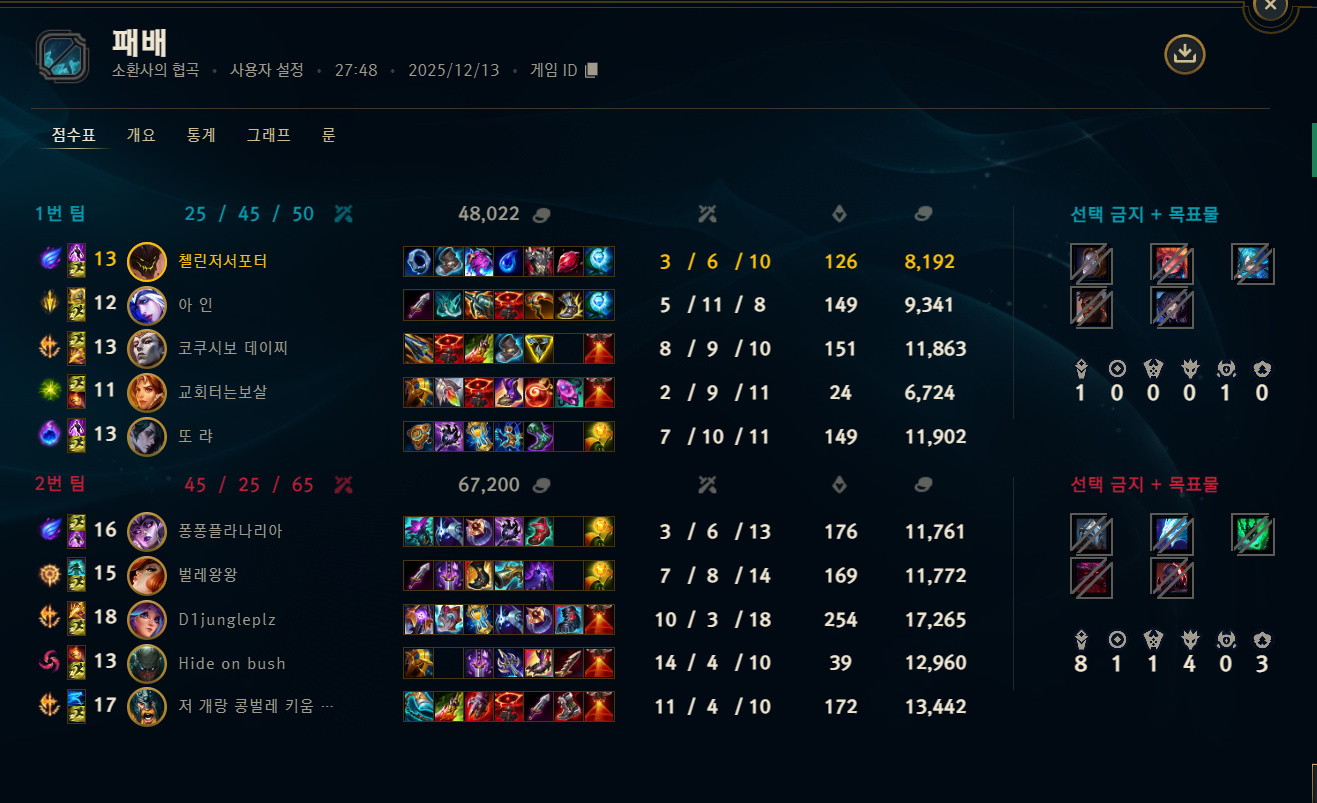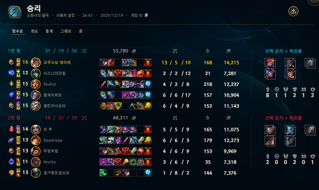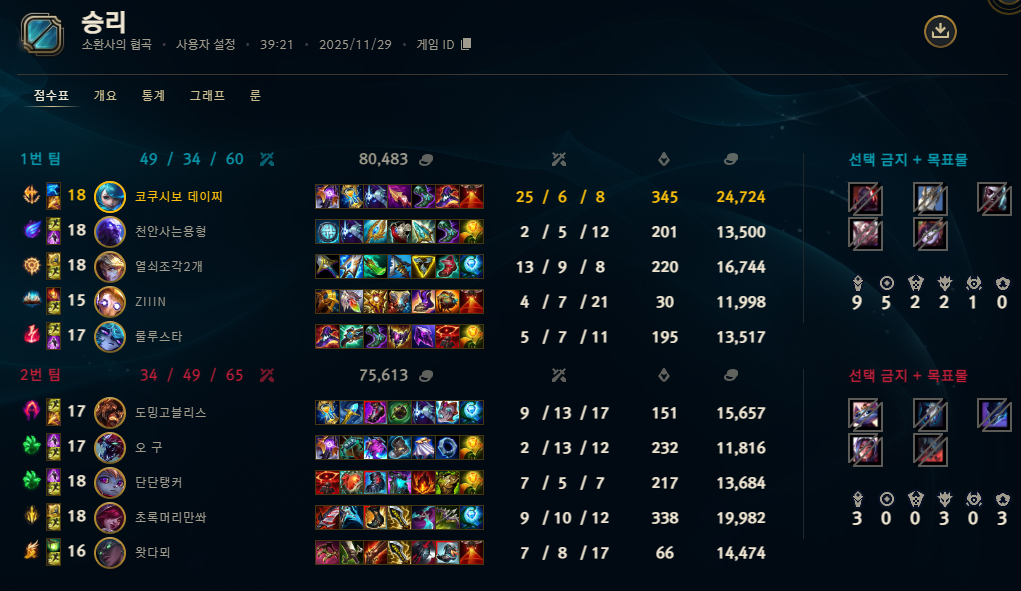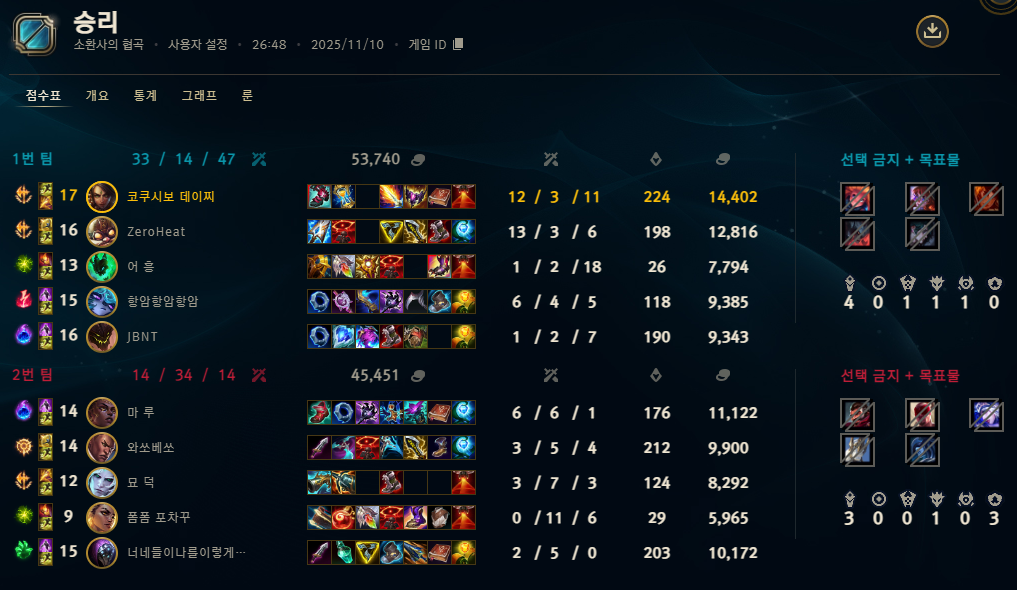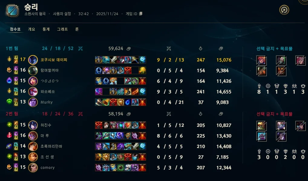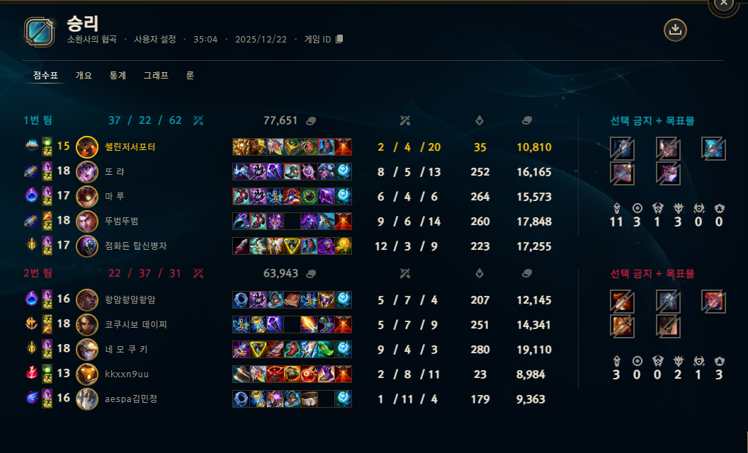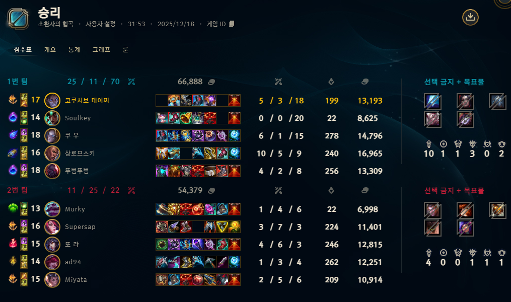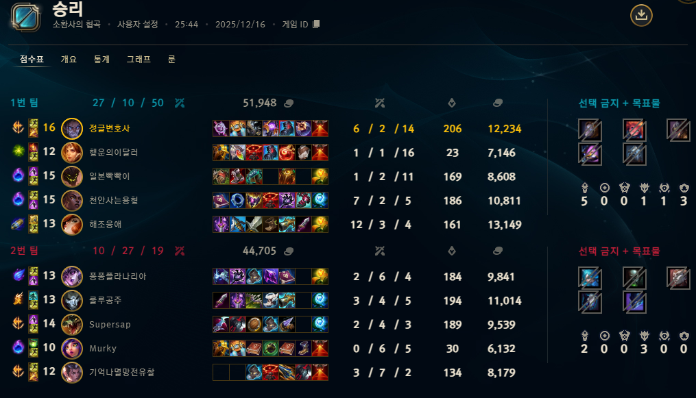 | 챔피언 | 게임 수 | 승률 | K | D | A | CS |