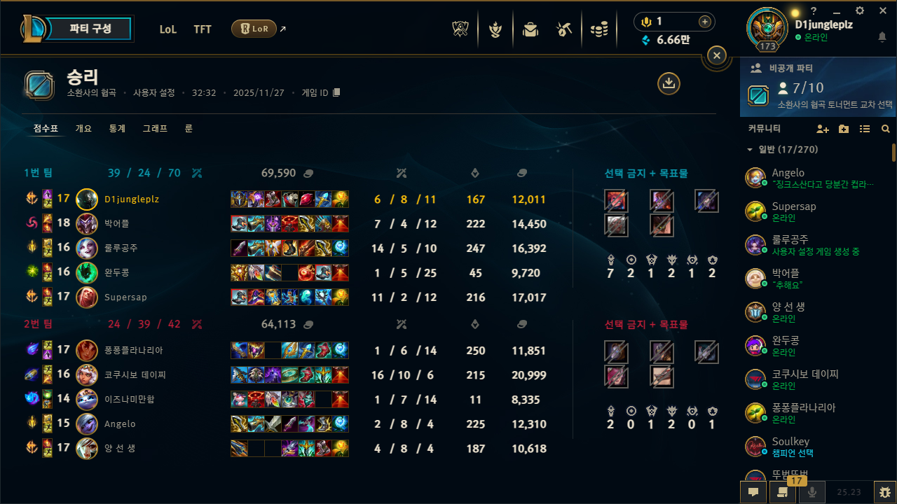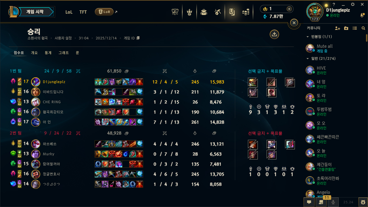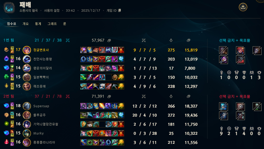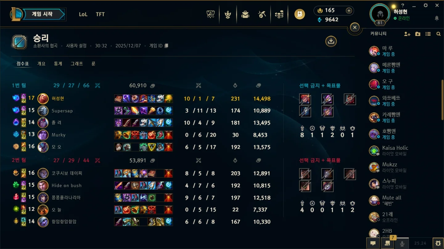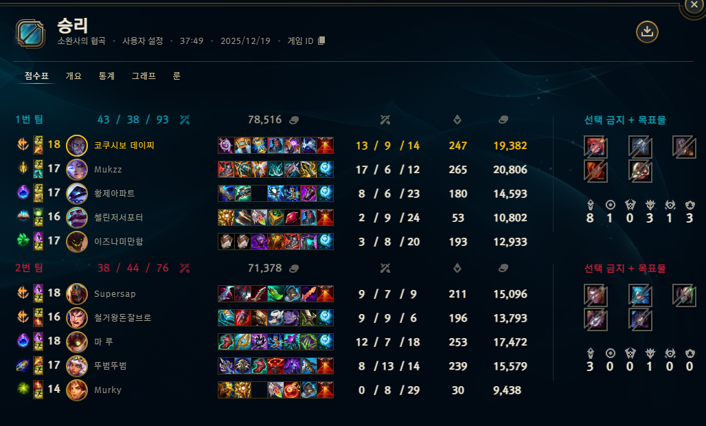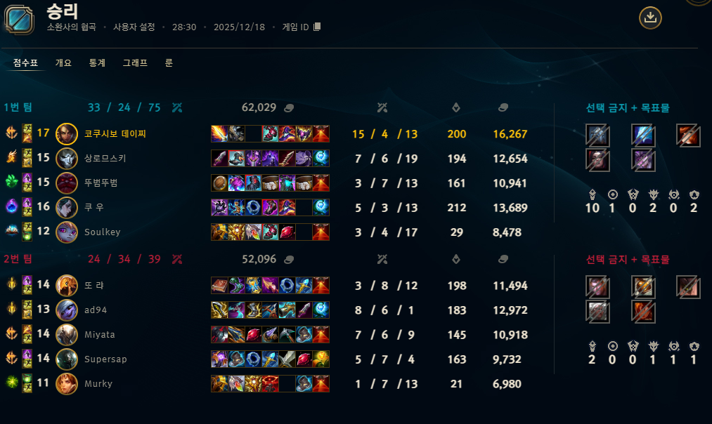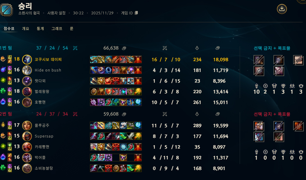 | 챔피언 | 게임 수 | 승률 | K | D | A | CS |