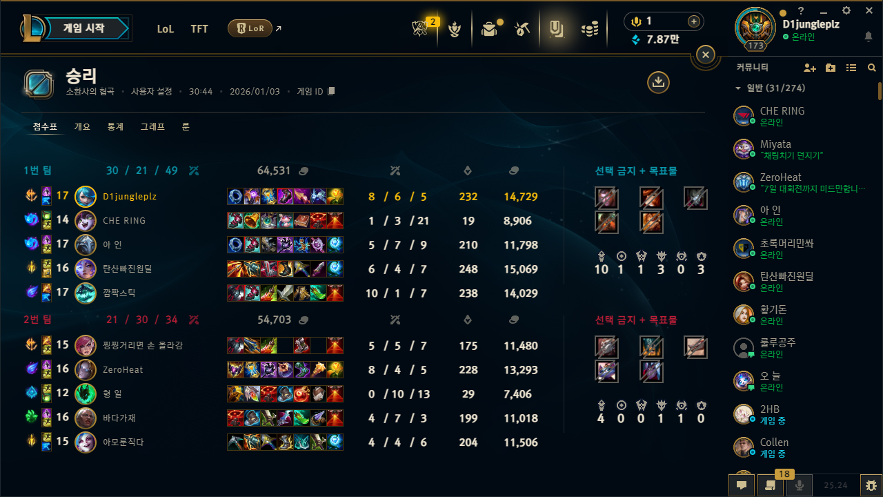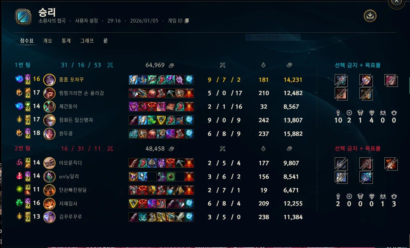 | 정글 | 배치중 | 50.0% | |