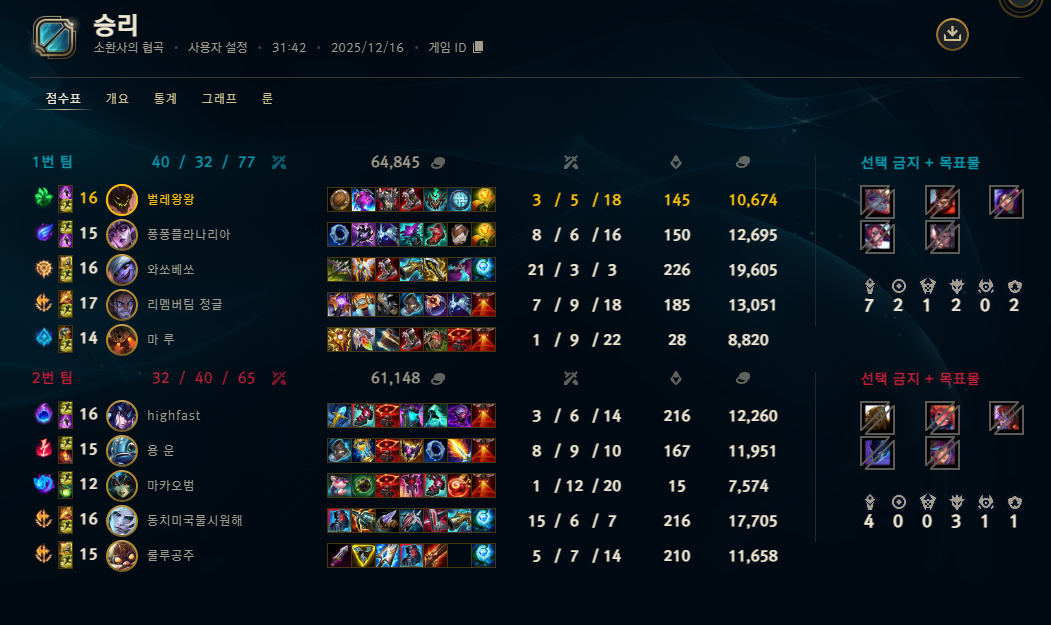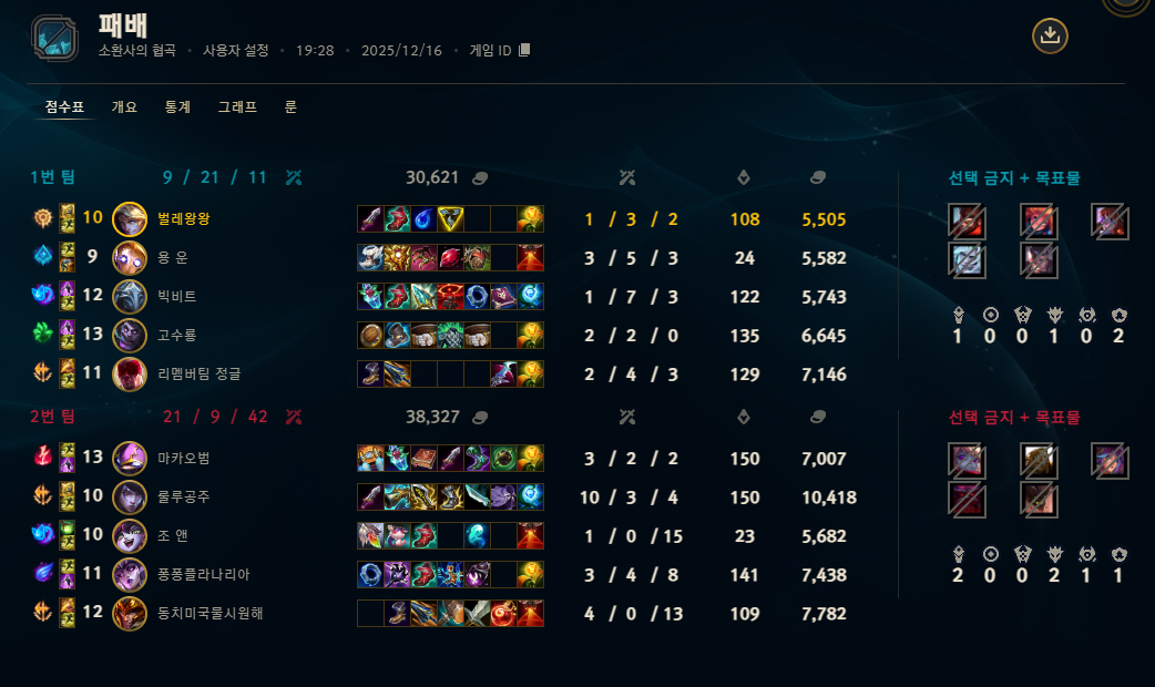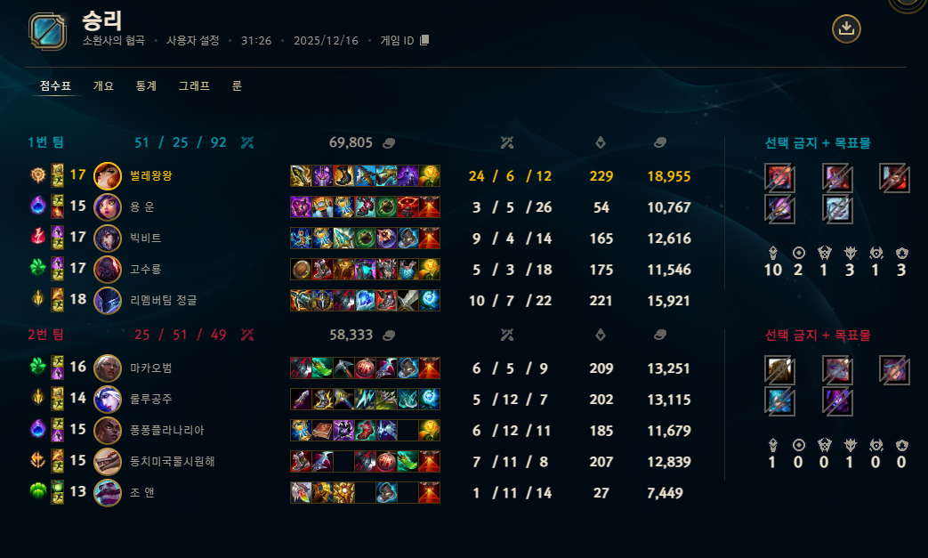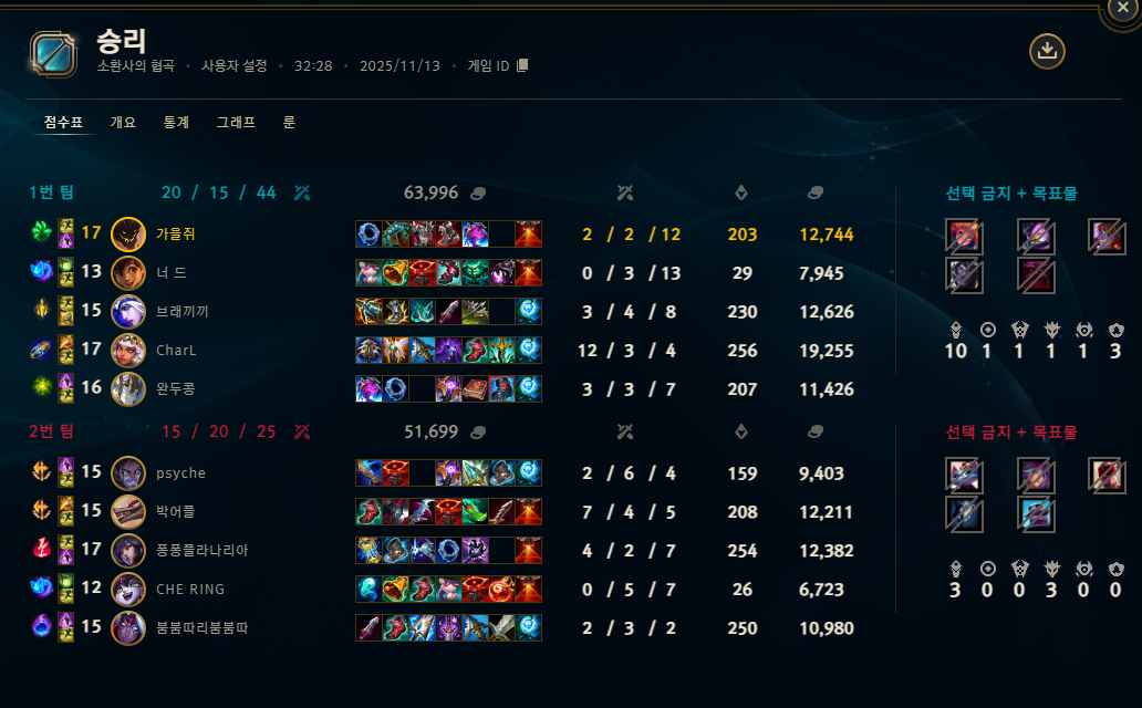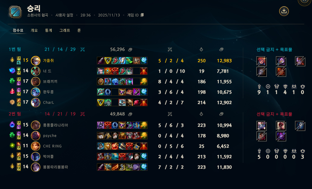 | 챔피언 | 게임 수 | 승률 | K | D | A | CS |