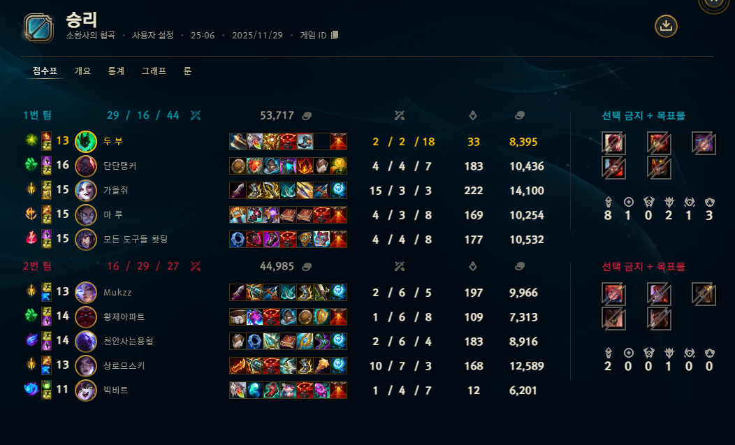 | 챔피언 | 게임 수 | 승률 | K | D | A | CS |
