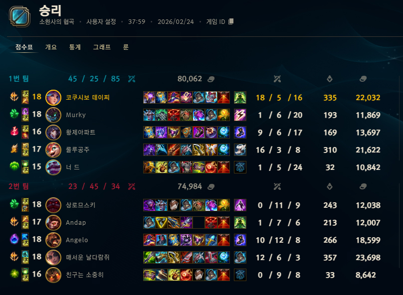 | 원딜 | 1645 | (+1590) | 72.7% |