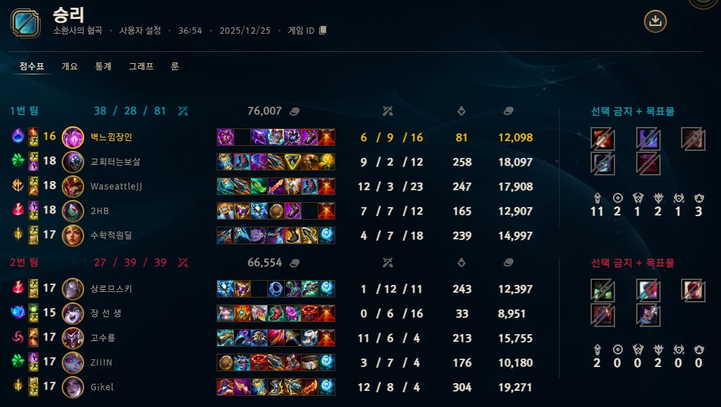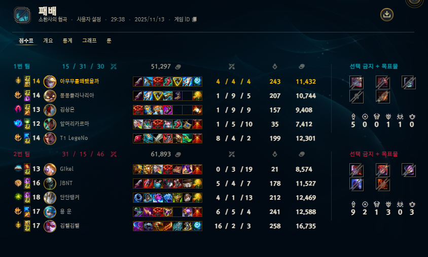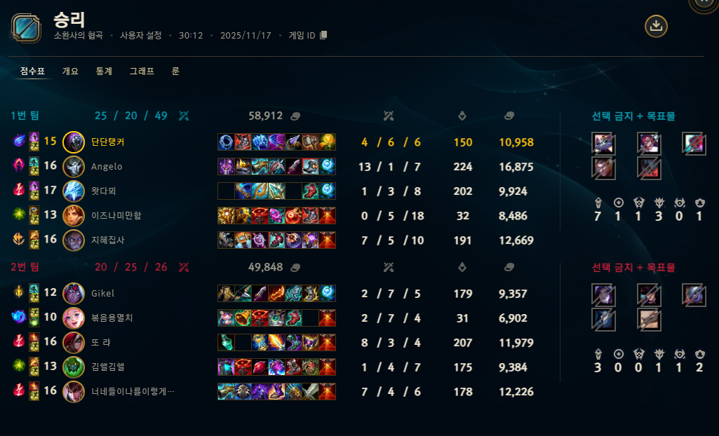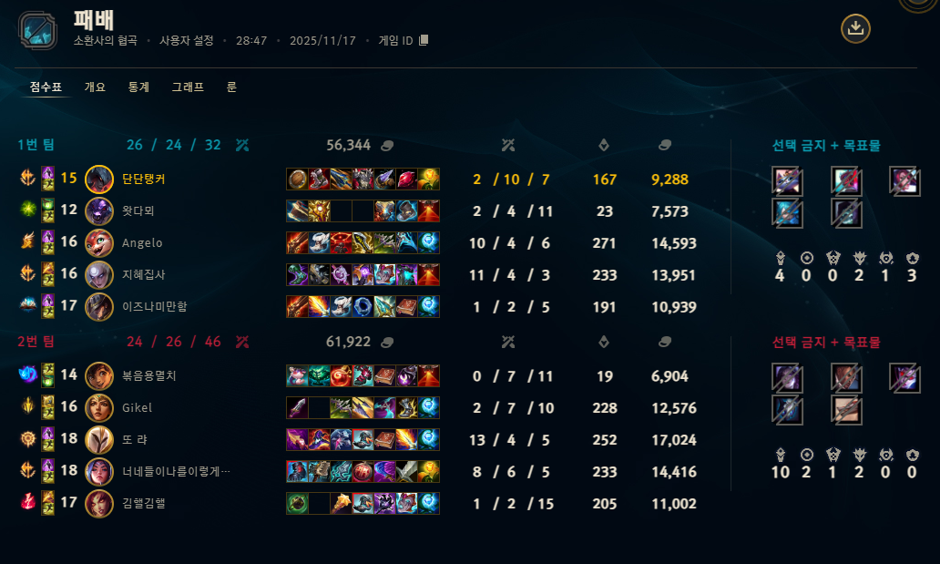 | 챔피언 | 게임 수 | 승률 | K | D | A | CS |