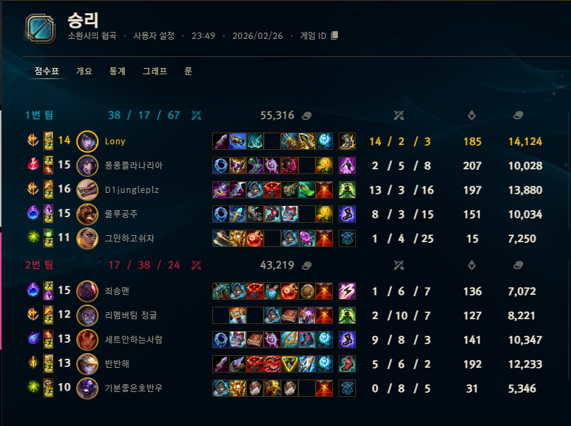 | 챔피언 | 게임 수 | 승률 | KDA | K | D | A | CS |