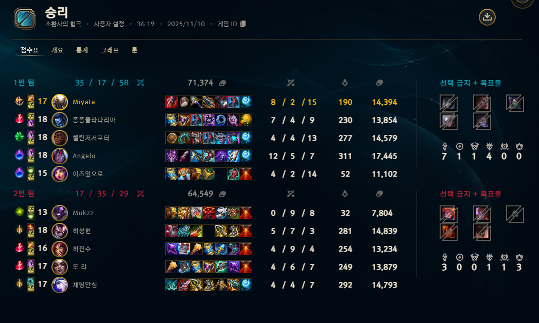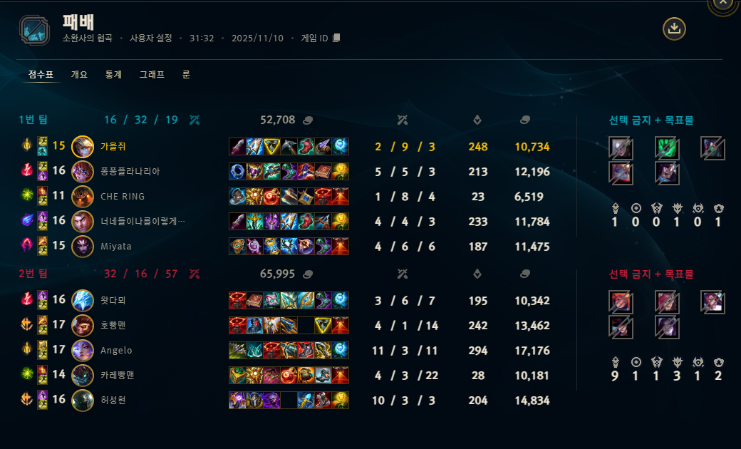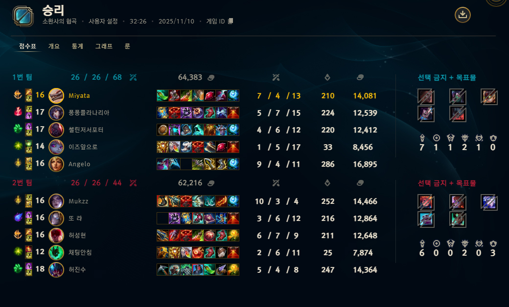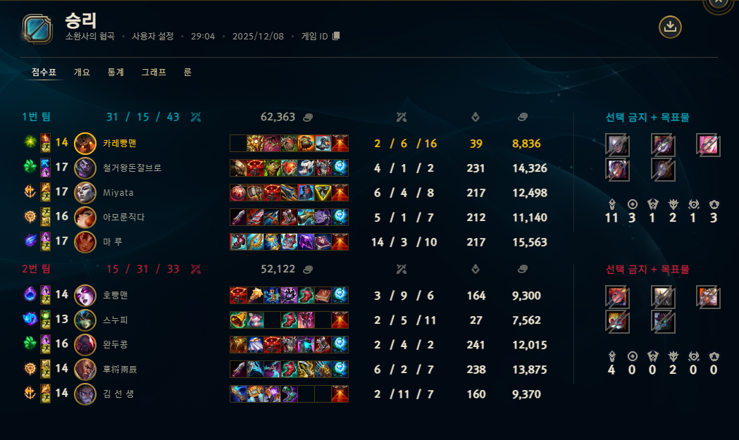 | 챔피언 | 게임 수 | 승률 | K | D | A | CS |
