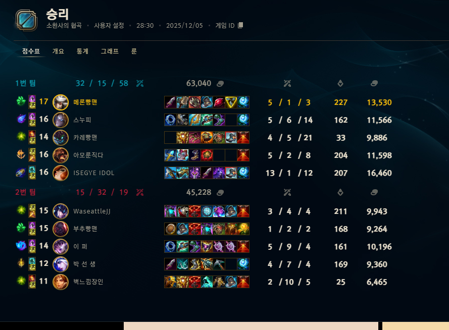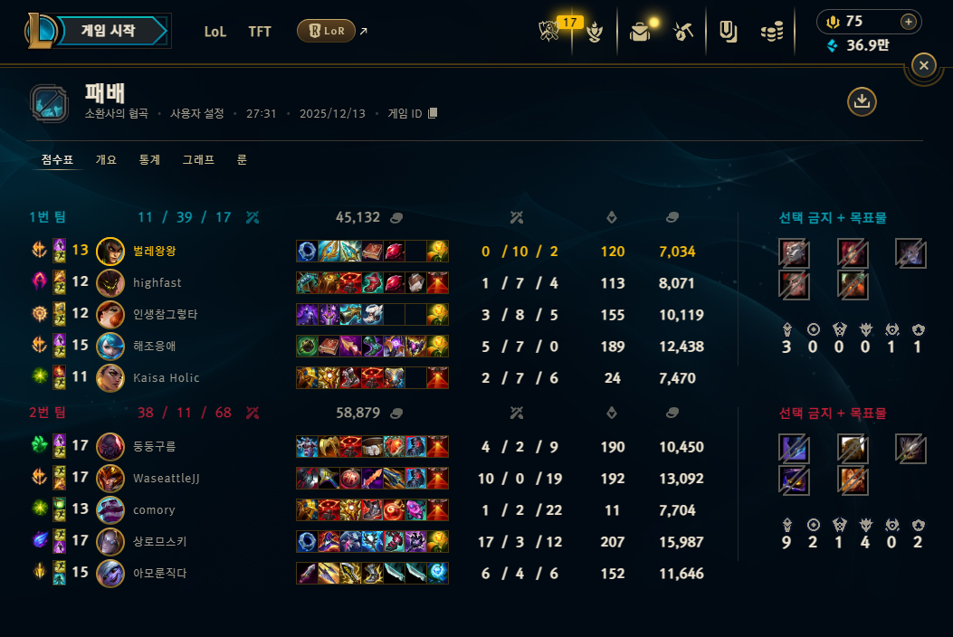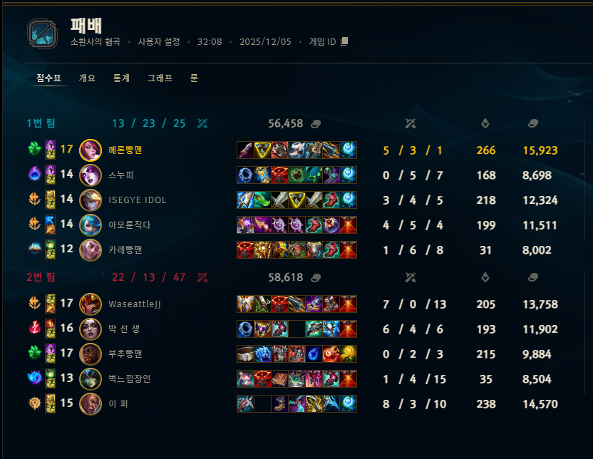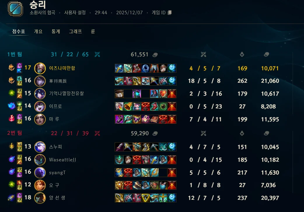 | 챔피언 | 게임 수 | 승률 | K | D | A | CS |