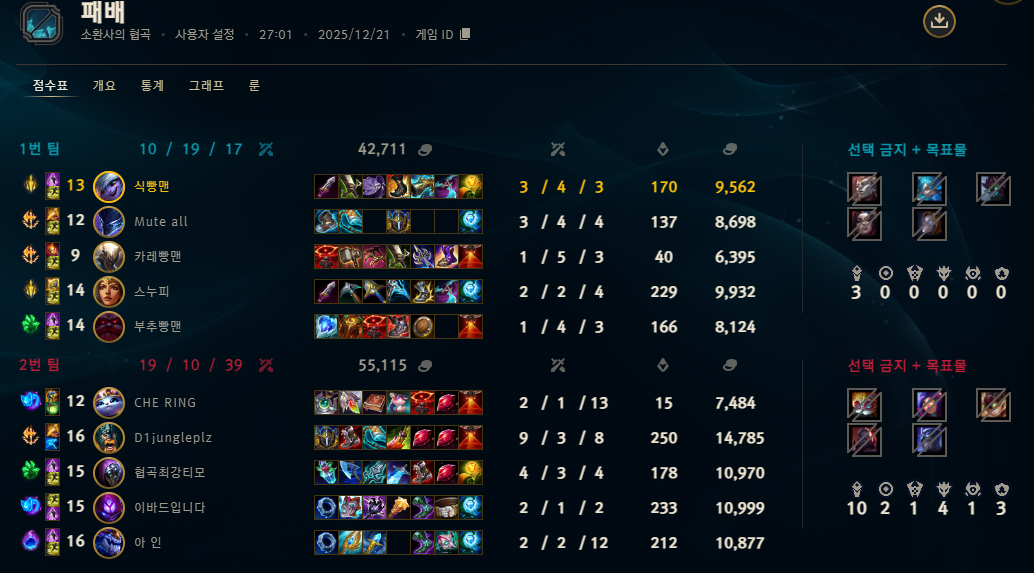 | 챔피언 | 게임 수 | 승률 | K | D | A | CS |