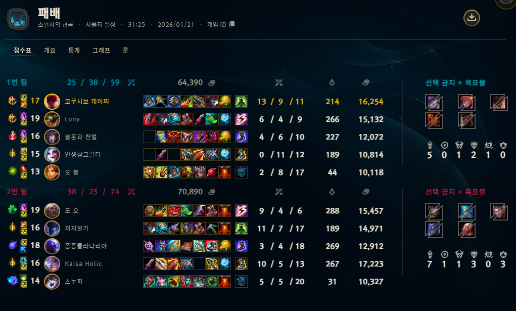 | 챔피언 | 게임 수 | 승률 | KDA | K | D | A | CS |